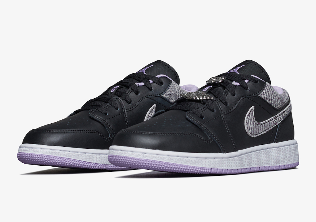 鞋侧 Swoosh 采用淡紫色点缀,呼应鞋舌 Jumpman Logo 机飞翼标志,最特别的地方是还额外附赠金属质感的飞翼 Logo 及 23 号字样鞋带扣,视觉层次更加丰富!