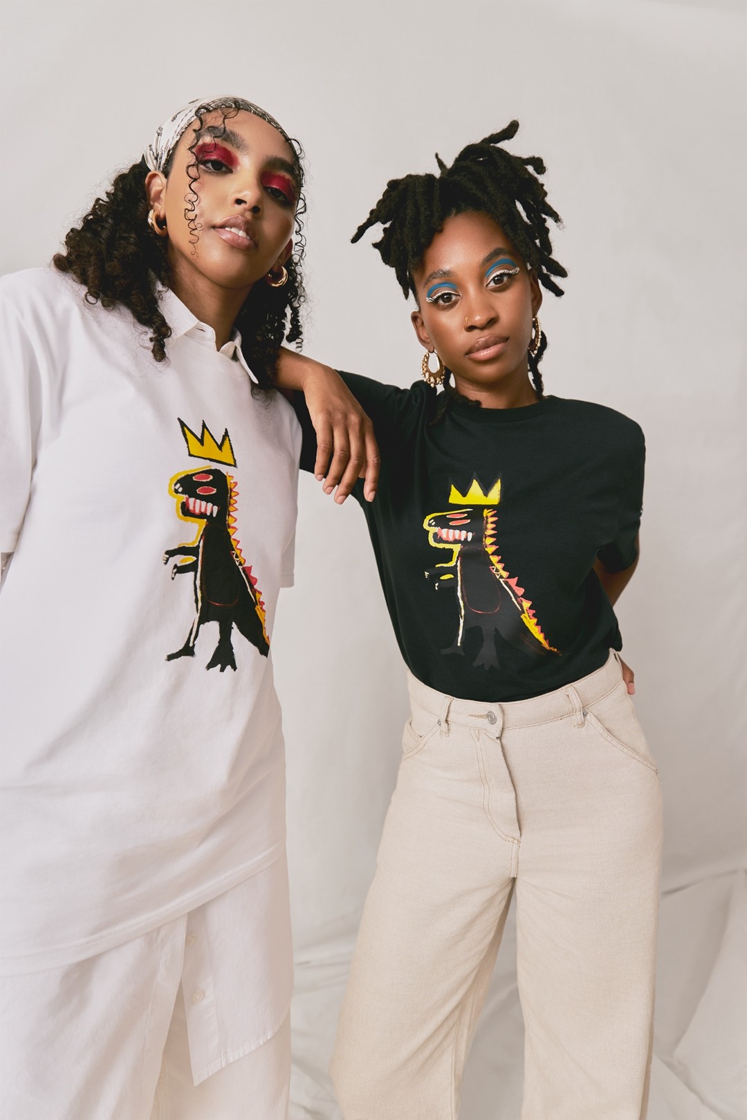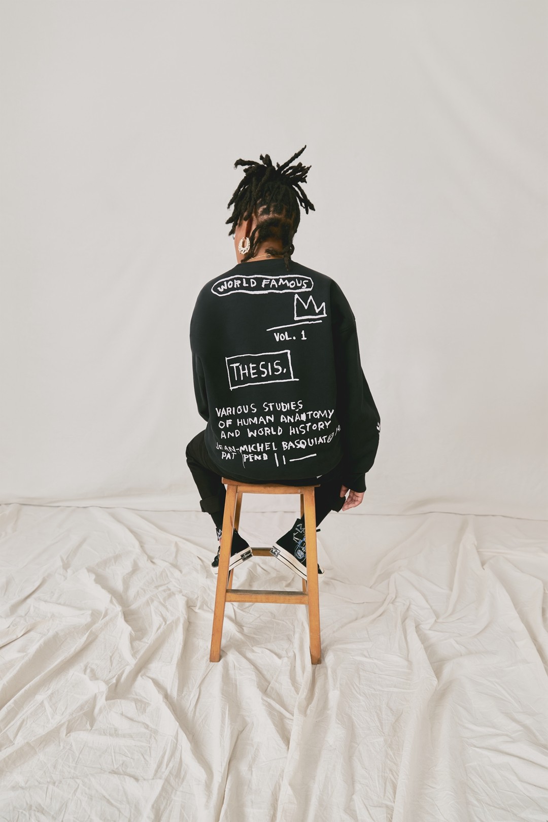 除了鞋款外,此次联名还推出了带有 Basquiat 标志性作品图案的 T 恤、卫衣等单品,并且覆盖于领口、袖口等细节之处。