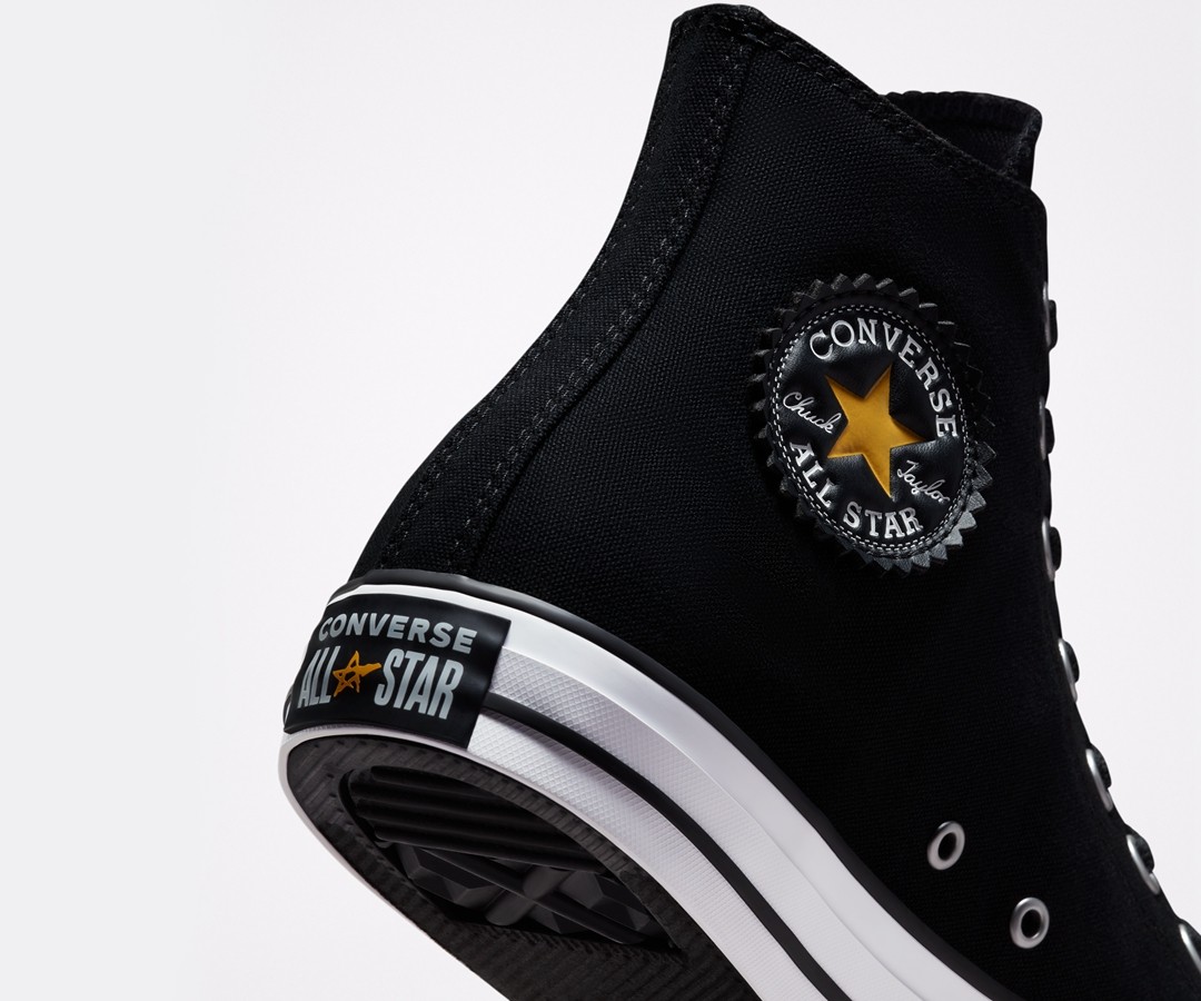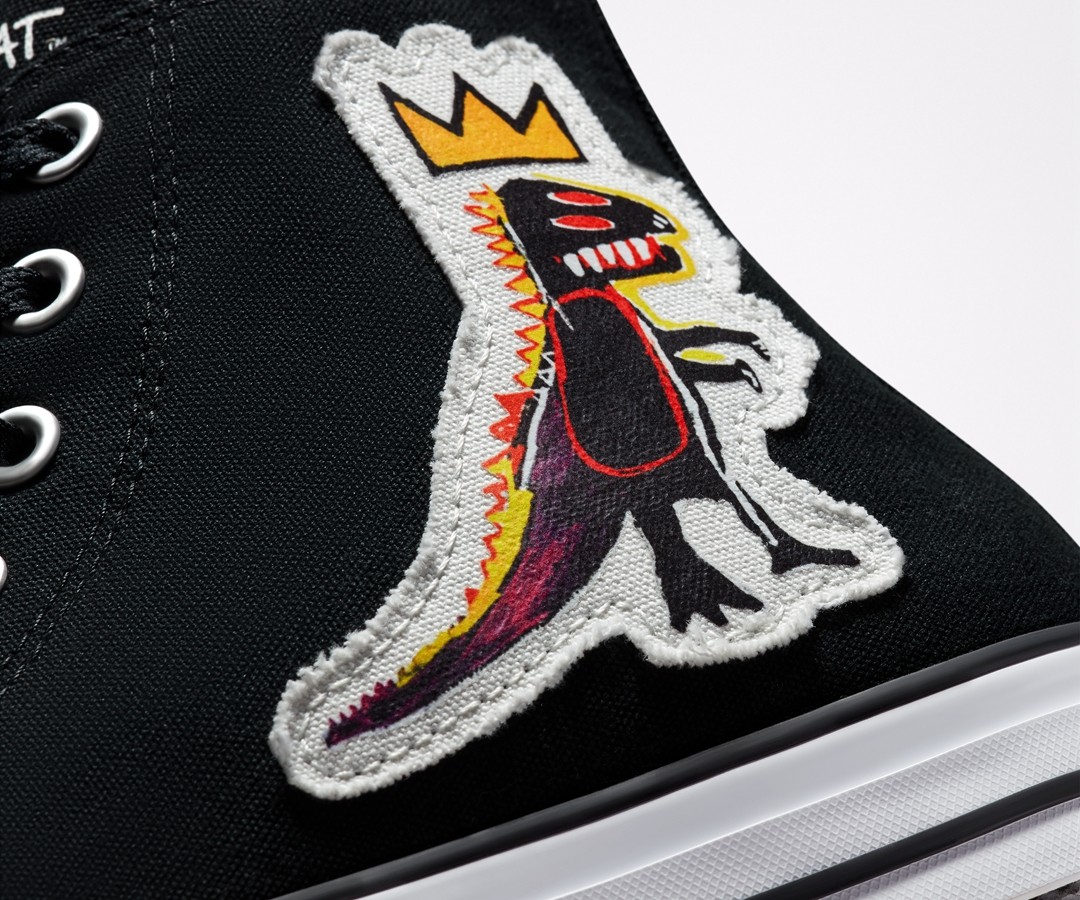 全新的 Basquiat x Converse Chuck 70 采用纯黑色造型打造,侧身处搭配上 Basquiat 怪兽图案,为简约的鞋身增添一抹亮眼细节。
