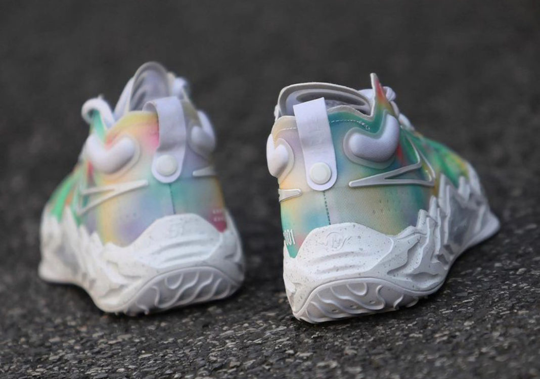 整双鞋以流线型的外形示人,鞋面以炫酷的热成像风格装扮,视觉效果格外醒目。
