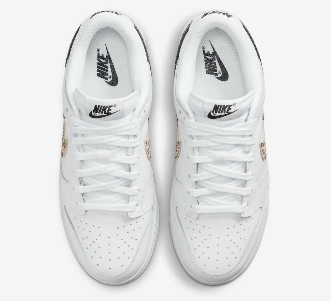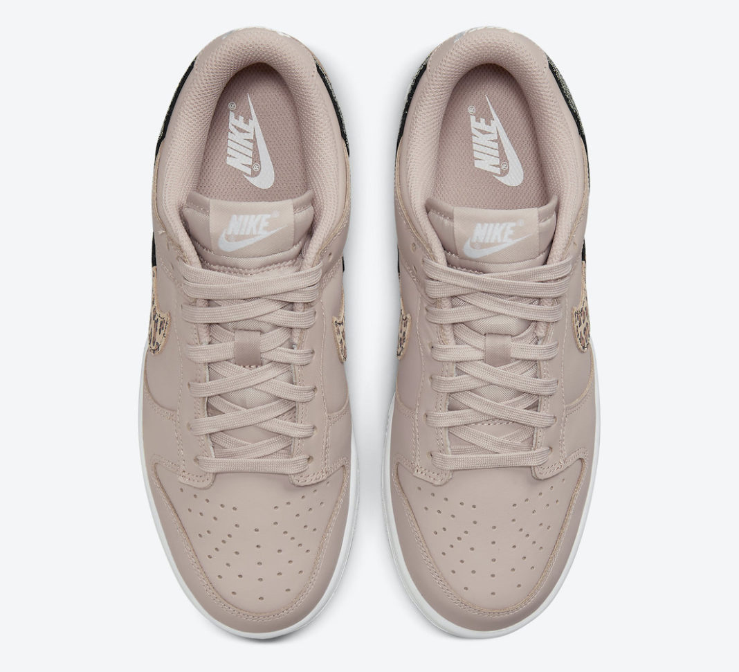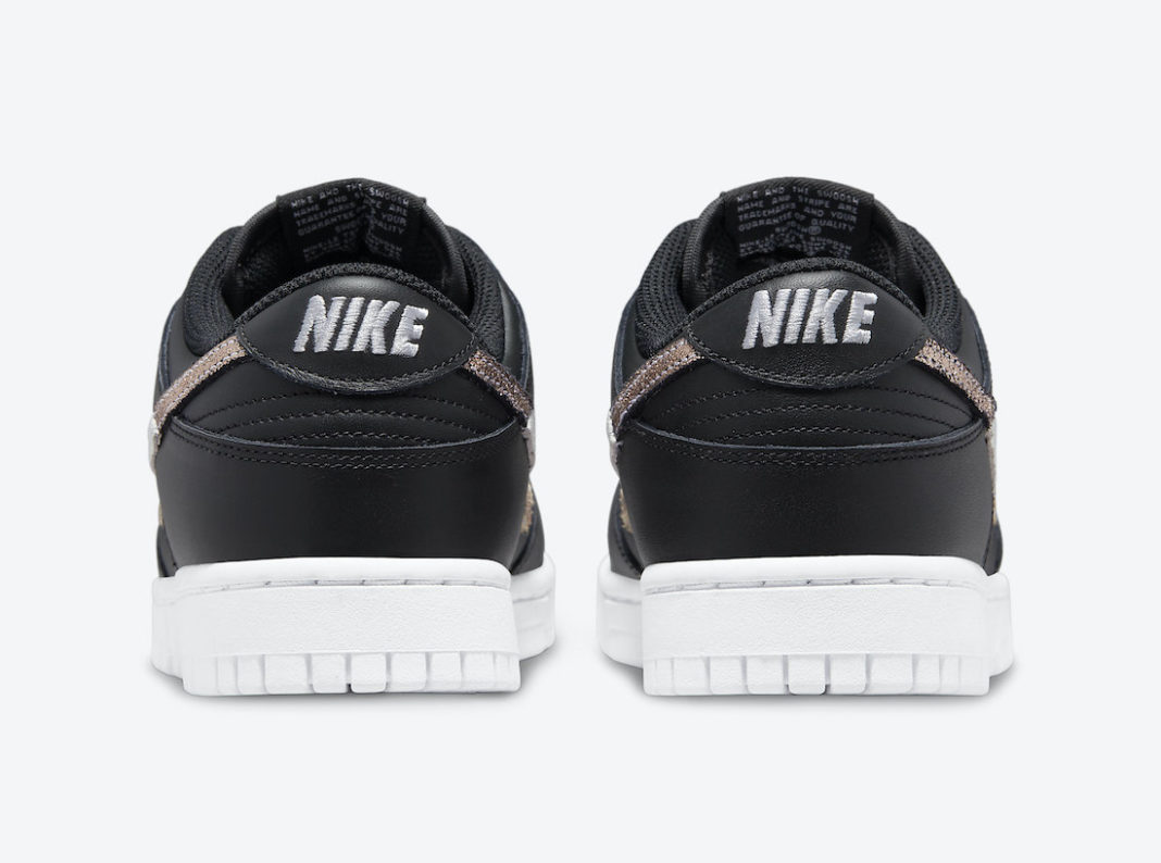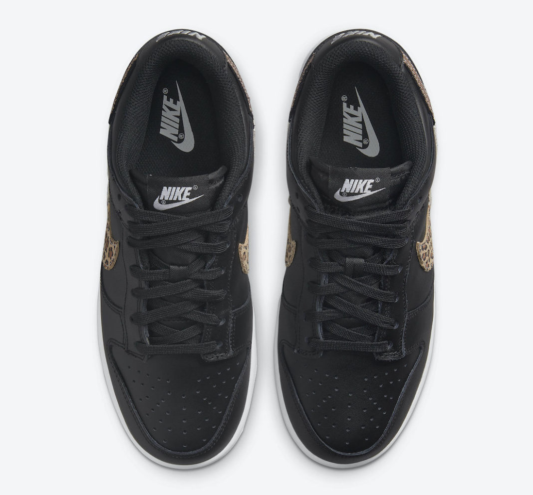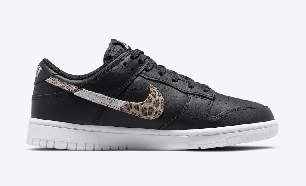 鞋侧 Swoosh Logo 以豹纹、黑色裂纹和金色做旧皮革拼接而成,带来不错的层次感。
