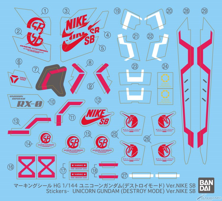 除此之外,今日还曝光了 2 套日本地区限定 HG 规格 1/144 「Nike SB 联名拼装模型」。