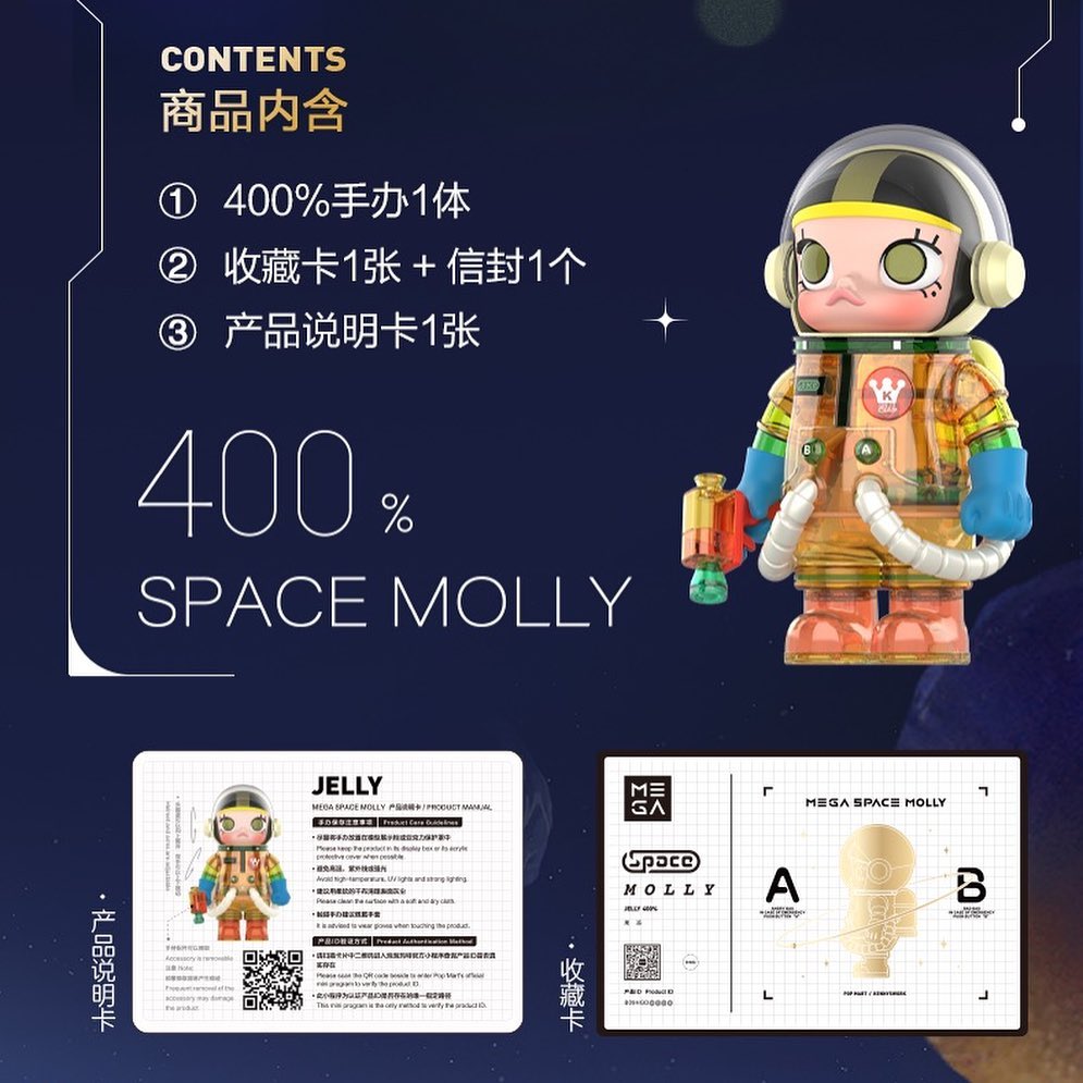 除此之外,感兴趣的朋友也别忘了同期还将有 400% 的同款造型 SPACE MOLLY JELLY 发售,发售价格 ¥1099 RMB。