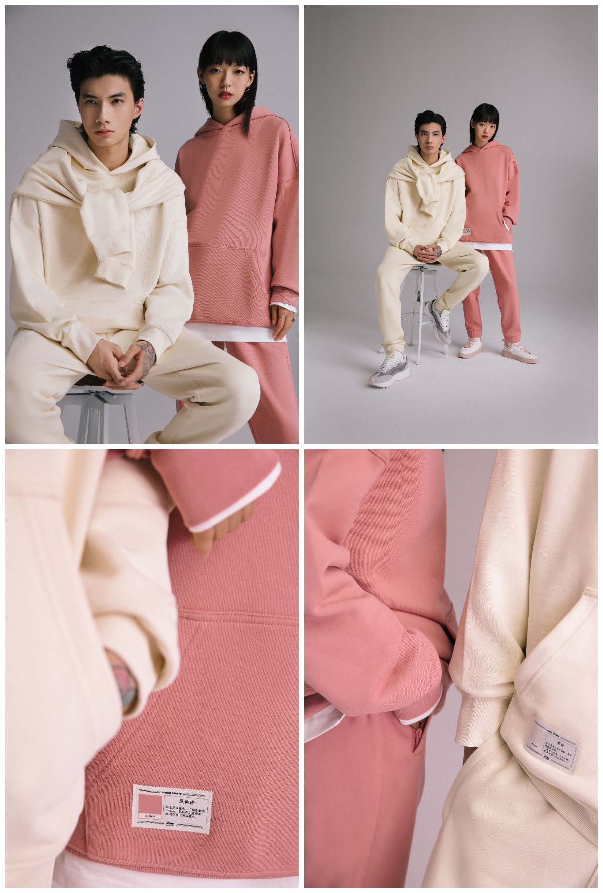 涵盖套头无帽卫衣、套头连帽卫衣、开衫连帽卫衣以及卫裤等,以简洁的款式、纯一的色彩,配合利落剪裁、考究细节塑造出独特廓形感,流行元素的运用让色彩绽放出当代审美下的独特潮流格调。