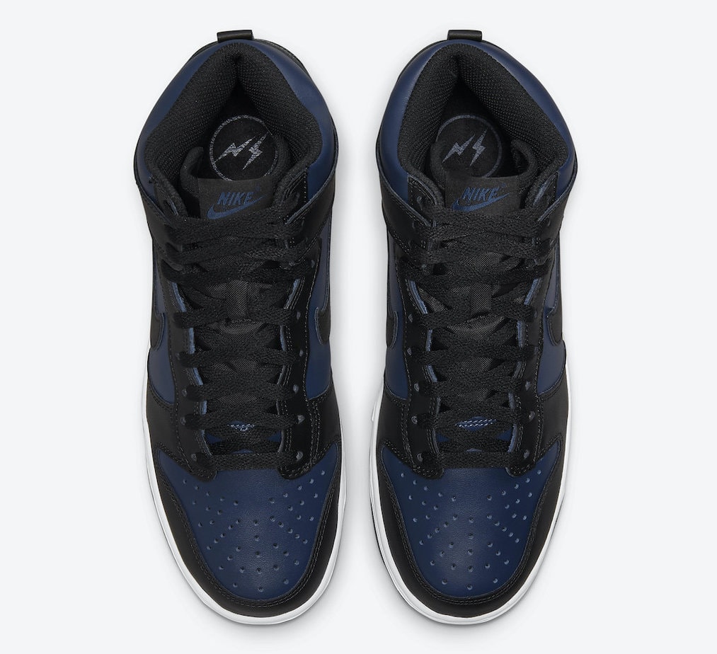 藤原浩再度带来闪电 Dunk Hi 联名“东京”配色,中底依旧加入最近频繁使用鞋款信息编码设计。