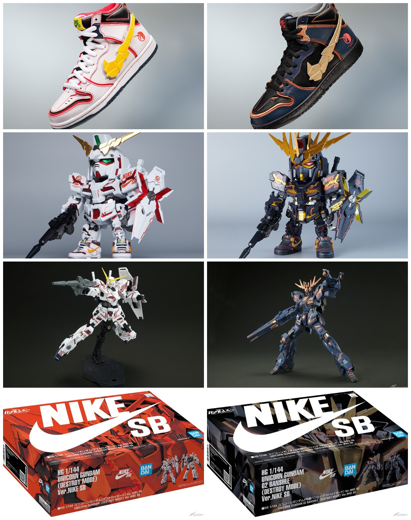本次不仅带来 2 款独角兽和报丧女妖造型的鞋款,更额外推出 4 款限定模型,其中1/144 HG 版本的模型包装还特别采用 Nike SB 封绘呈现,相当用心。