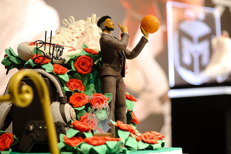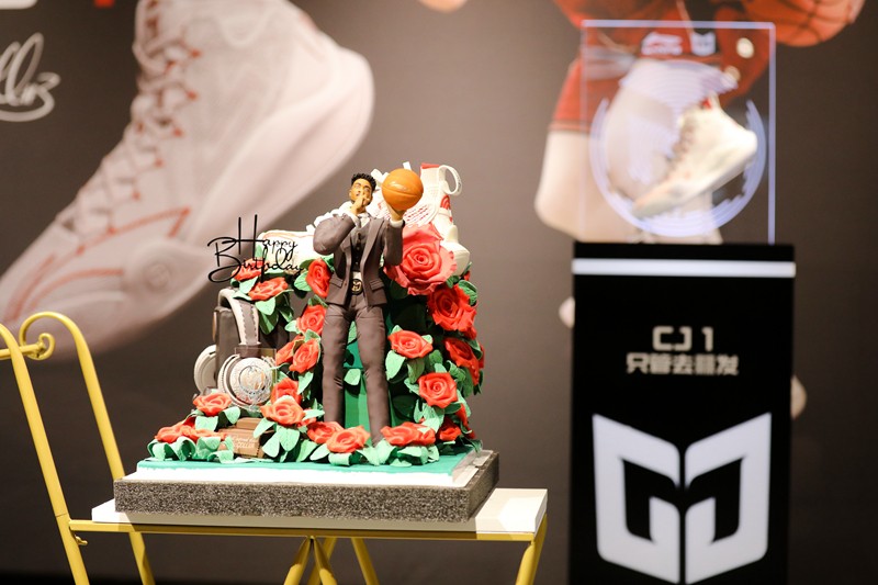 除此之外,此次生日会最大的亮点聚集在了活动现场的李宁 CJ1 篮球鞋上。