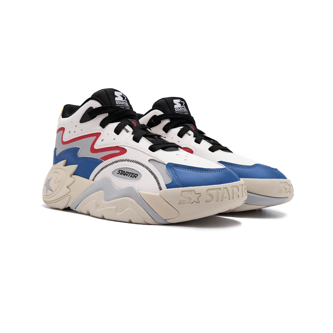 “BOMB-MID 爆破” 鞋款从 90 年代的复古篮球鞋中汲取灵感,结合上 STARTER 的品牌基因,展现联名身份。