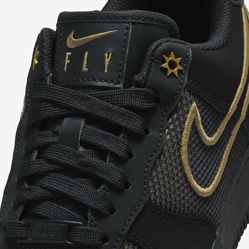 另外鞋舌处也一改往日的 Nike Logo,改为金色的 Swoosh 和 FLY 字样。