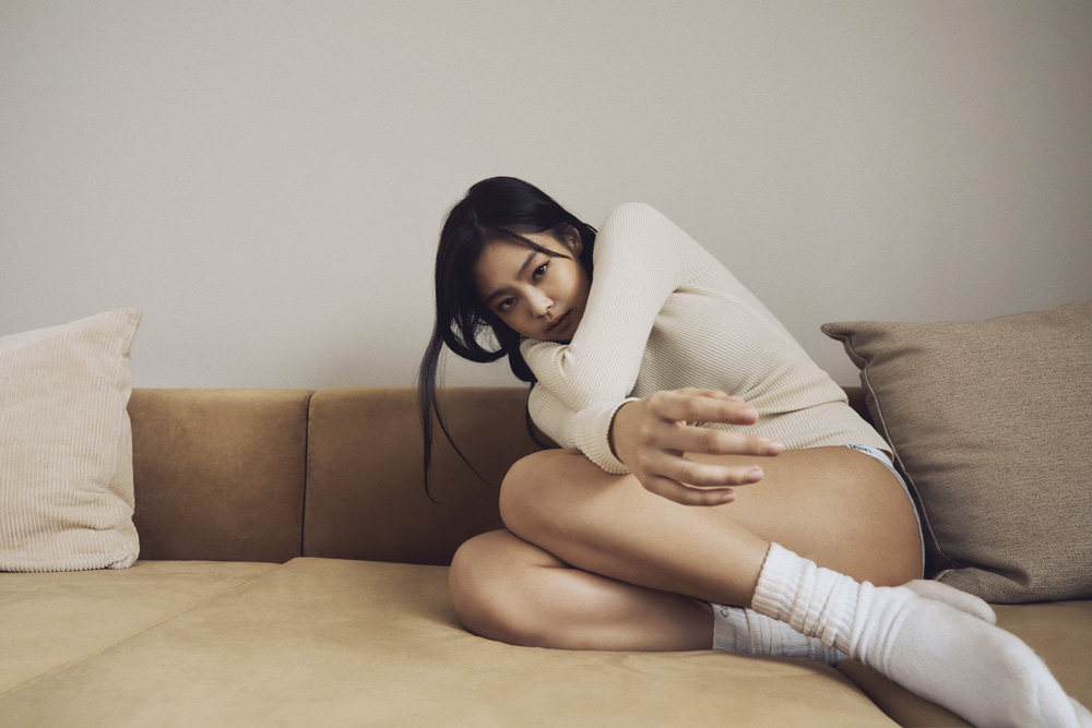 ▼ JENNIE 身着 STRUCTURE 系列内衣