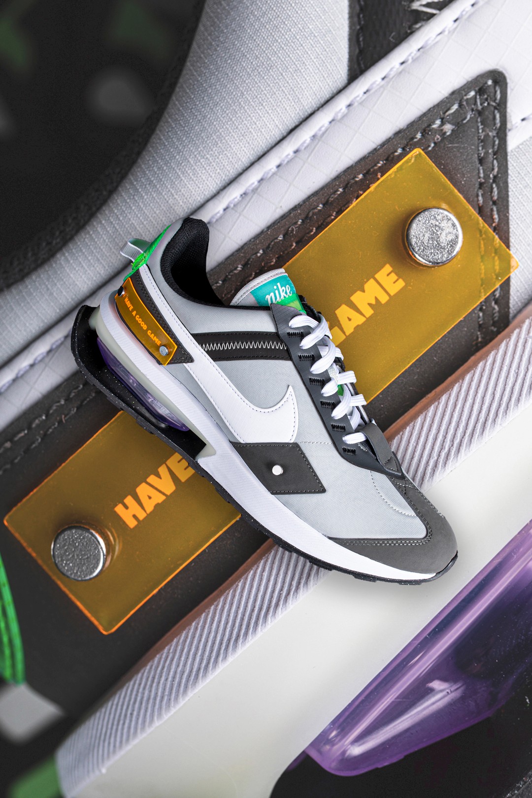 当中最值得一提的就是以 Air Max Pre-Day 为蓝本打造的鞋款,浅灰色的主调在鞋头、鞋带的补强位置加入深灰色妆点,让其呈现出十足的层次感。