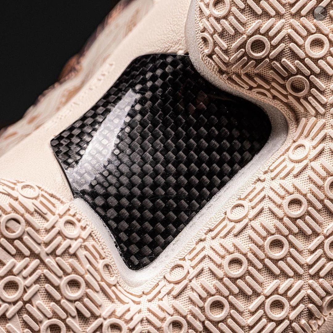 中底配置方面依旧搭载着 361° 目前最强的三态科技系统和足弓处加厚的大面积碳板,既保证了实战中的舒适脚感,还提供了不错的保护性。