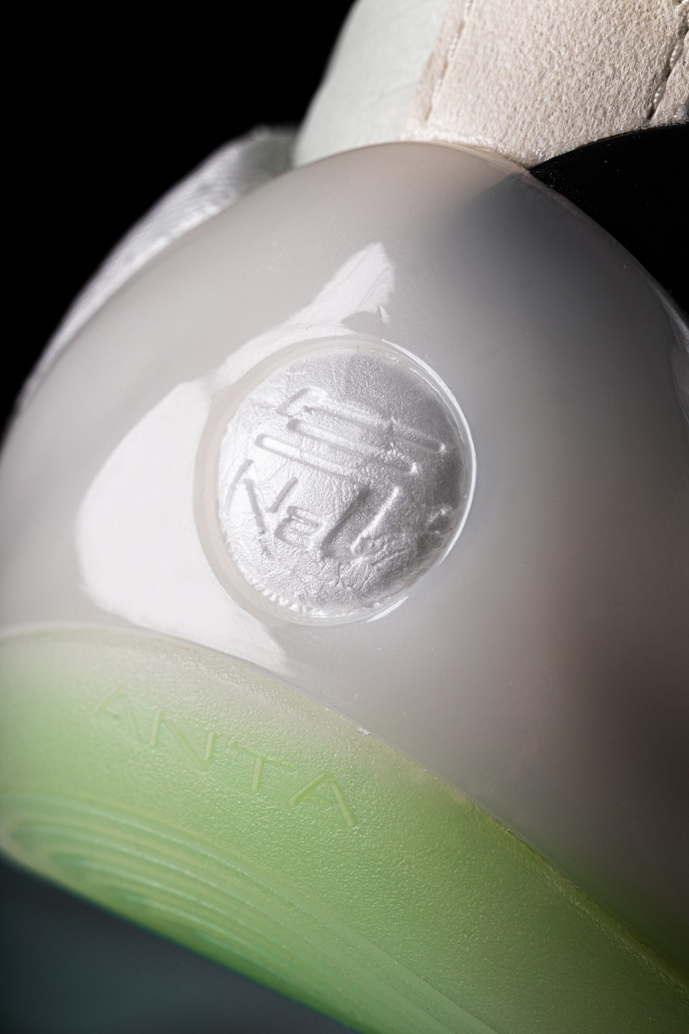 「氮」Logo 诠释着安踏氮科技作为整双鞋的核心科技,点缀在后跟。