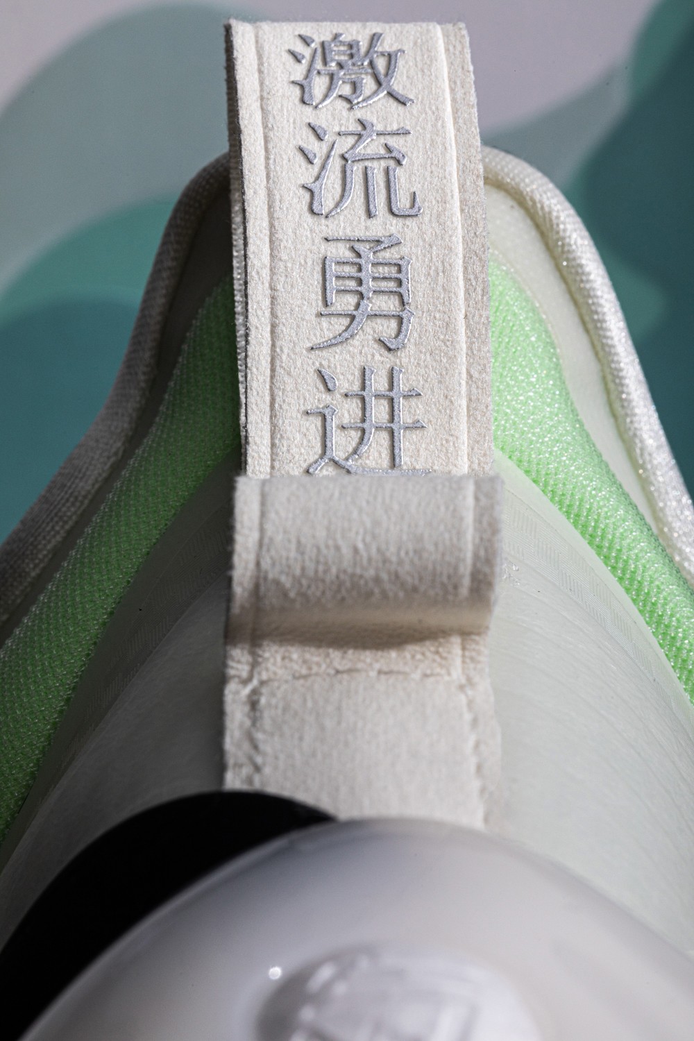 后跟鞋提上硕大的「激流勇进」字样象征着克莱的球风以及对于中国文化的热爱。
