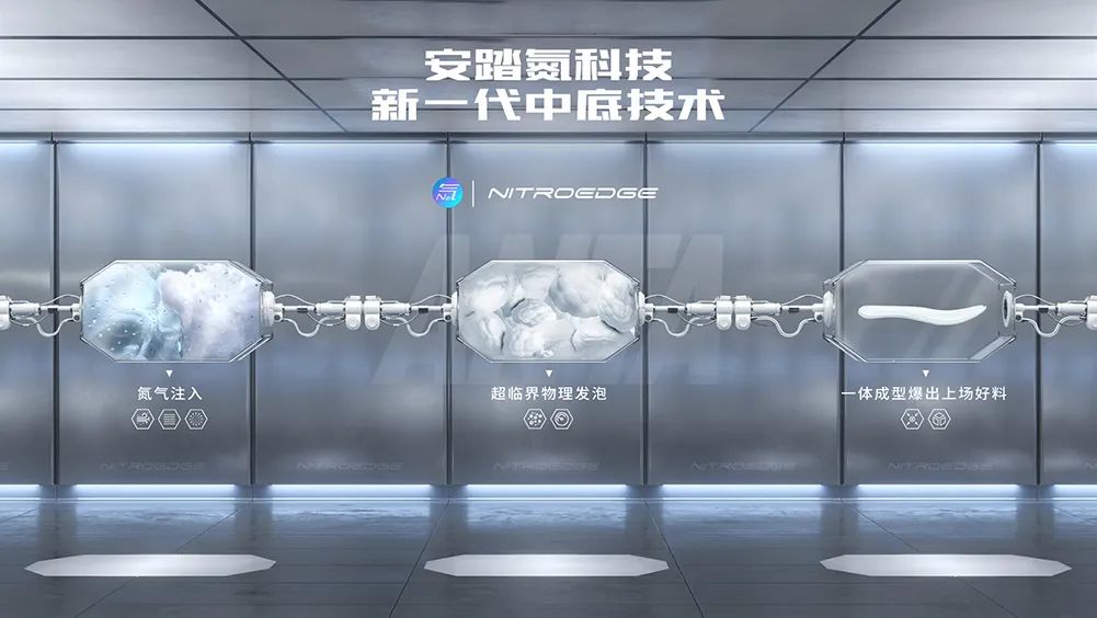 全新安踏氮科技的研发历时三年时间,超临界物理发泡在氮气加持下,具备了更轻质、高回弹以及持久强的特性。