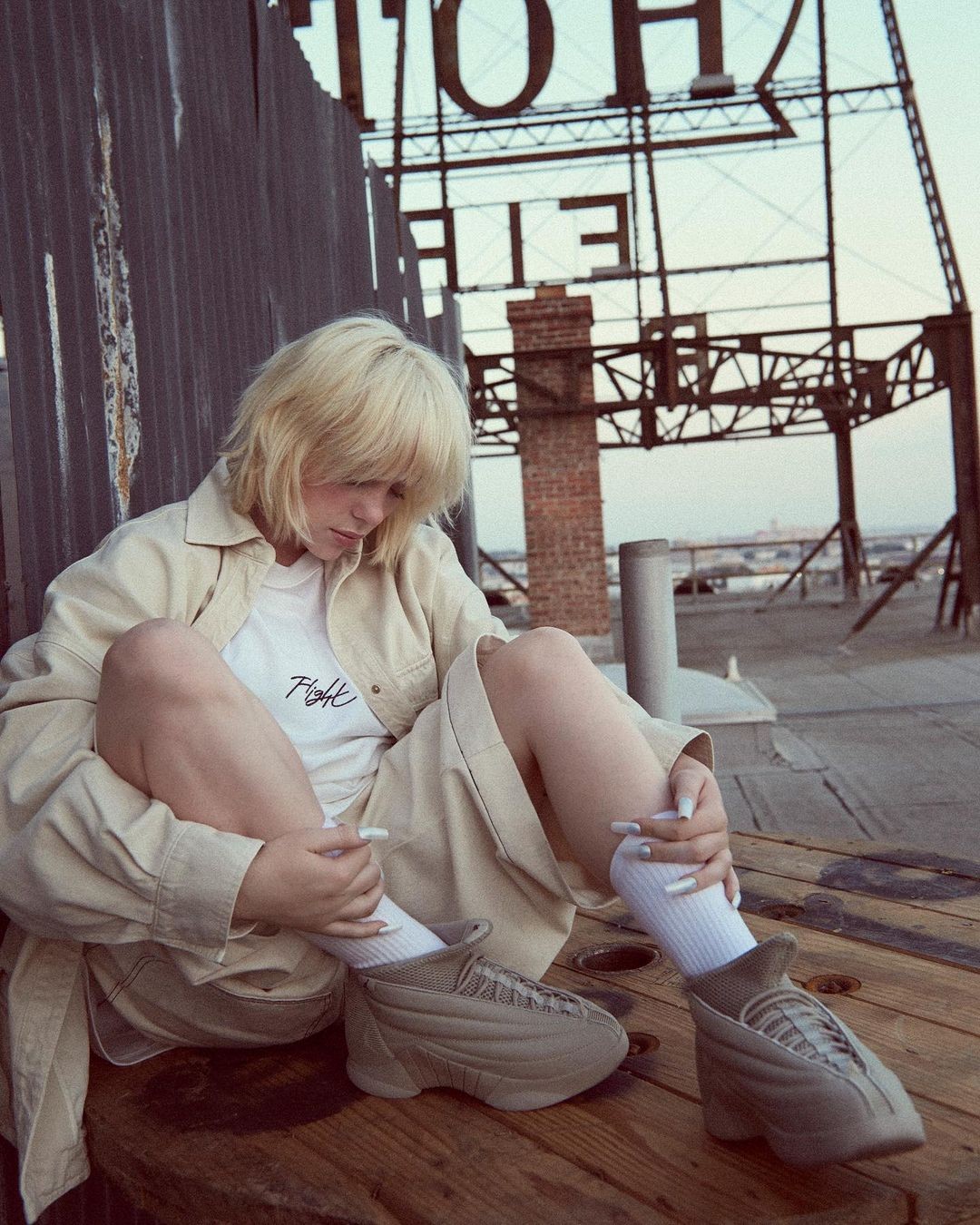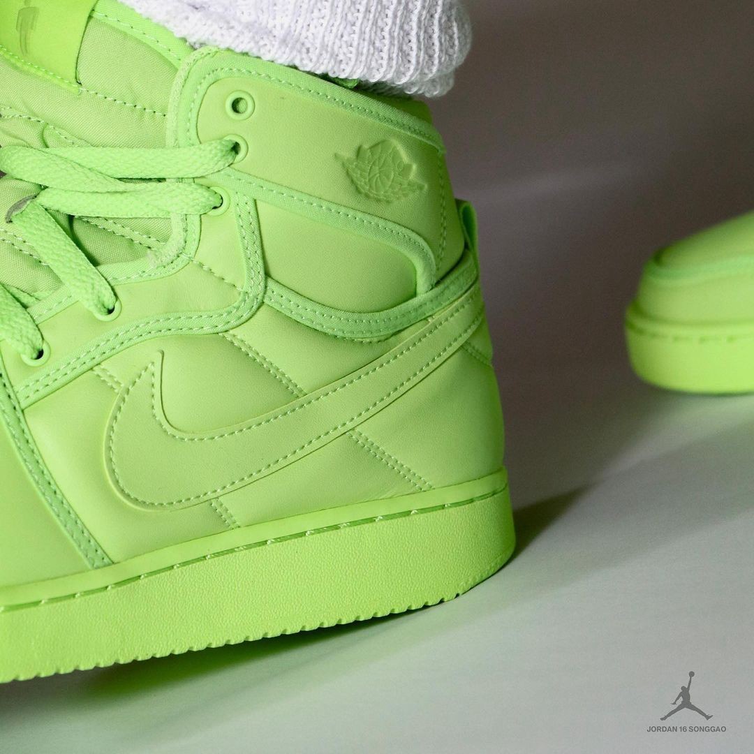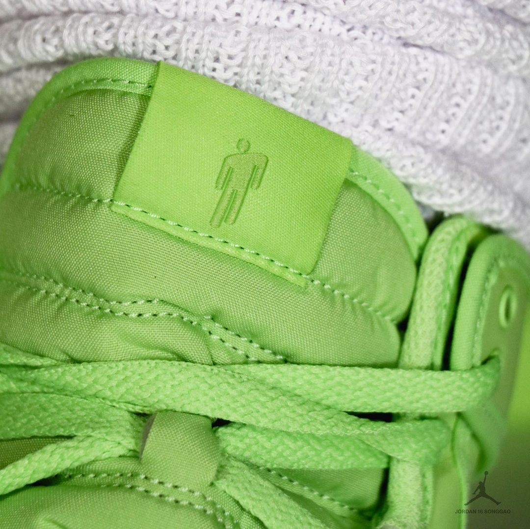 全新的 Billie Eilish x Air Jordan 1 KO 通体采用碧梨本人最爱的荧光绿色打造。