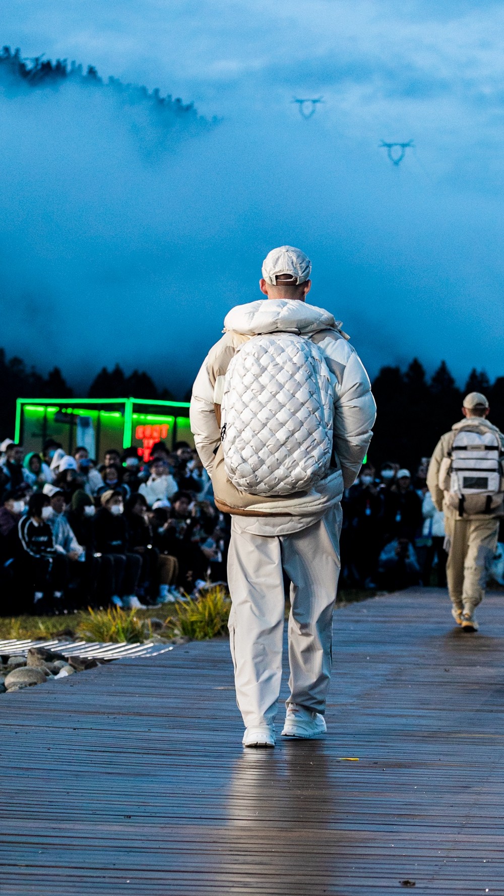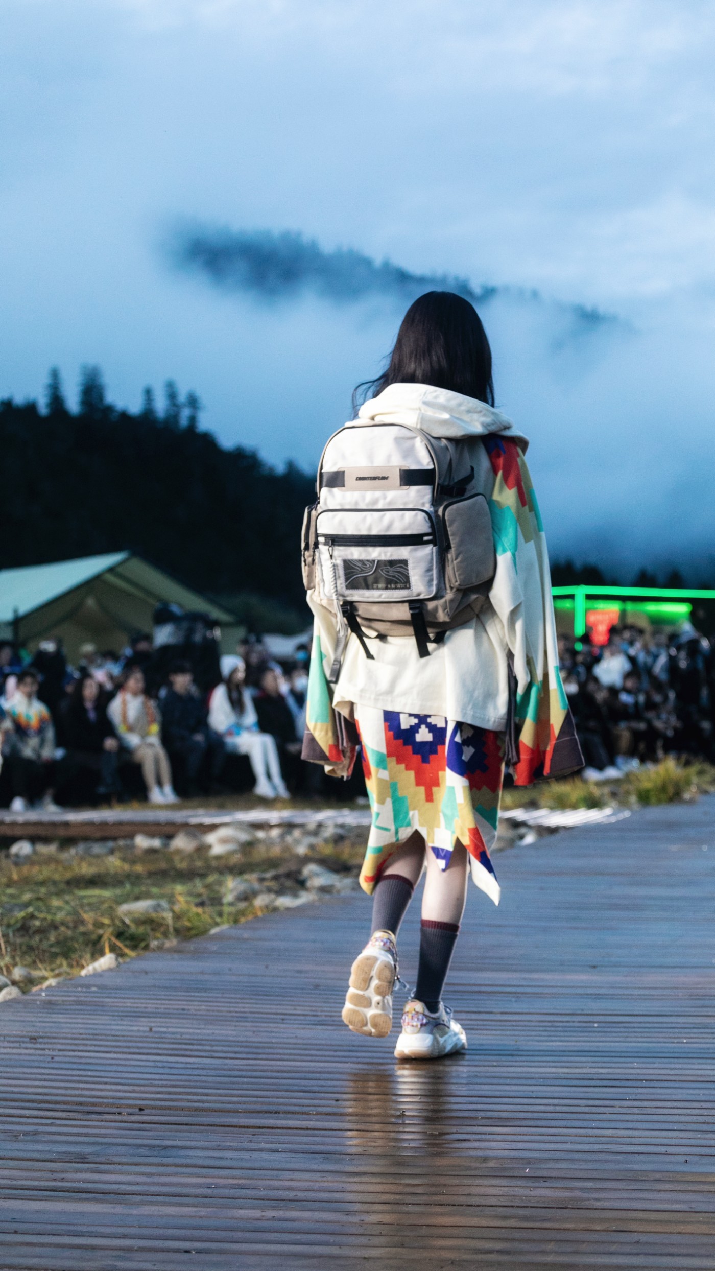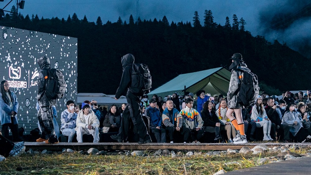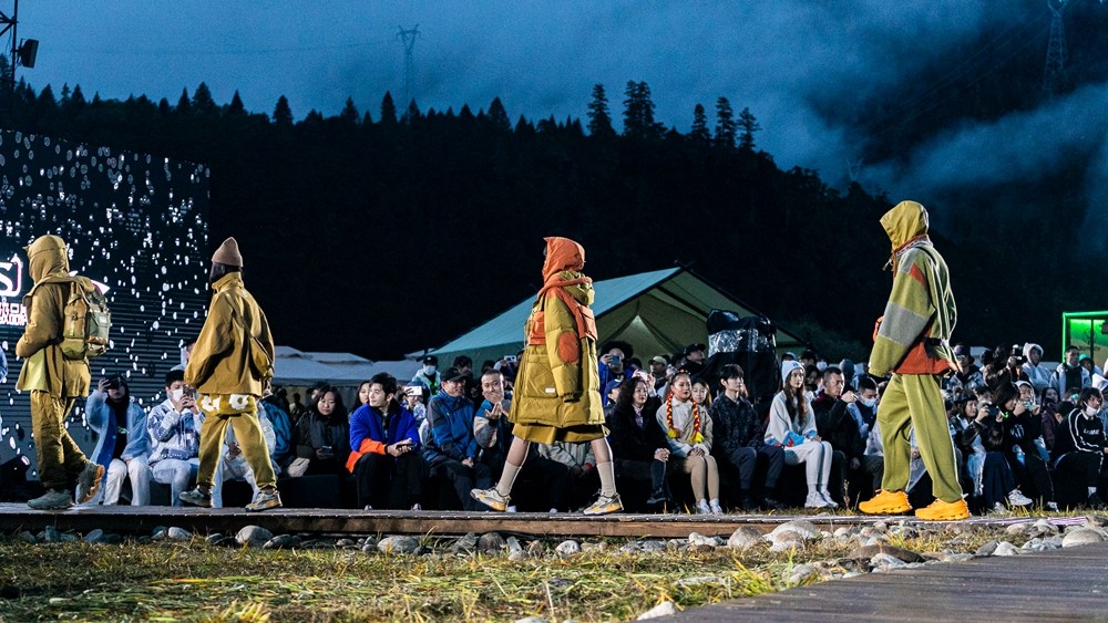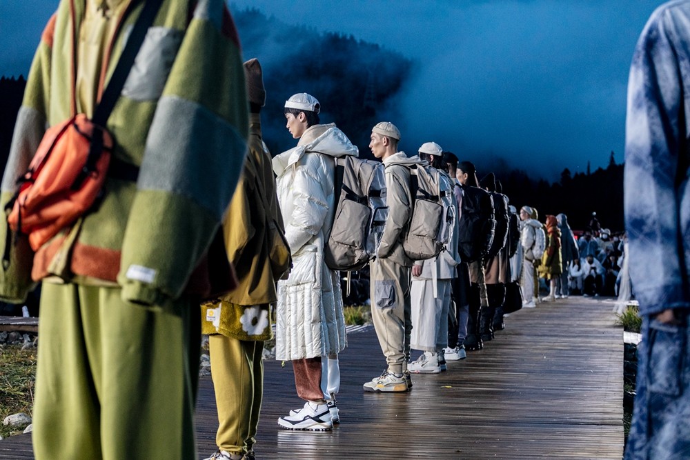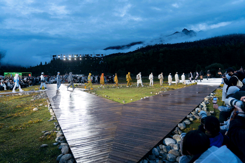 本次来到林芝,「李宁 2021 悟·行 主题大秀」主舞台以天地为背景,褪去城市的喧嚣,将秀场置于云雾缭绕的自然之中。