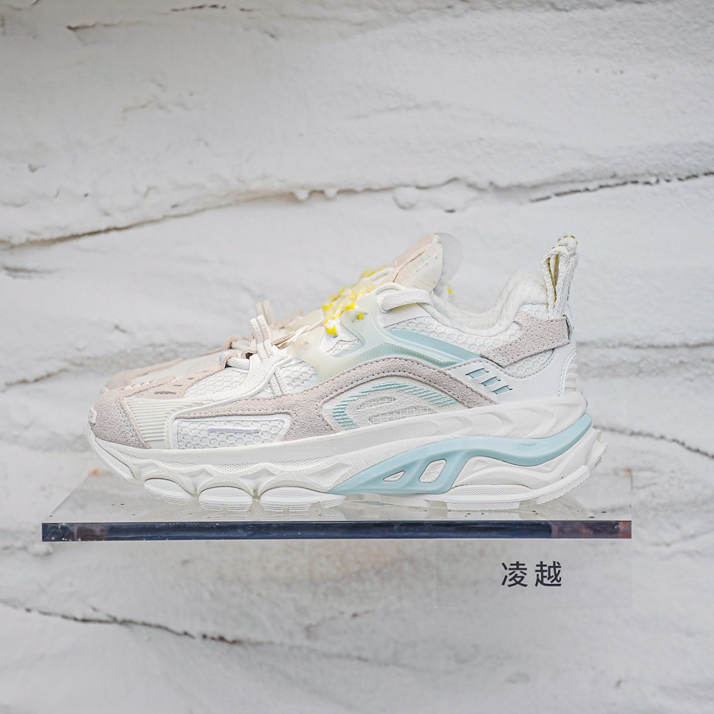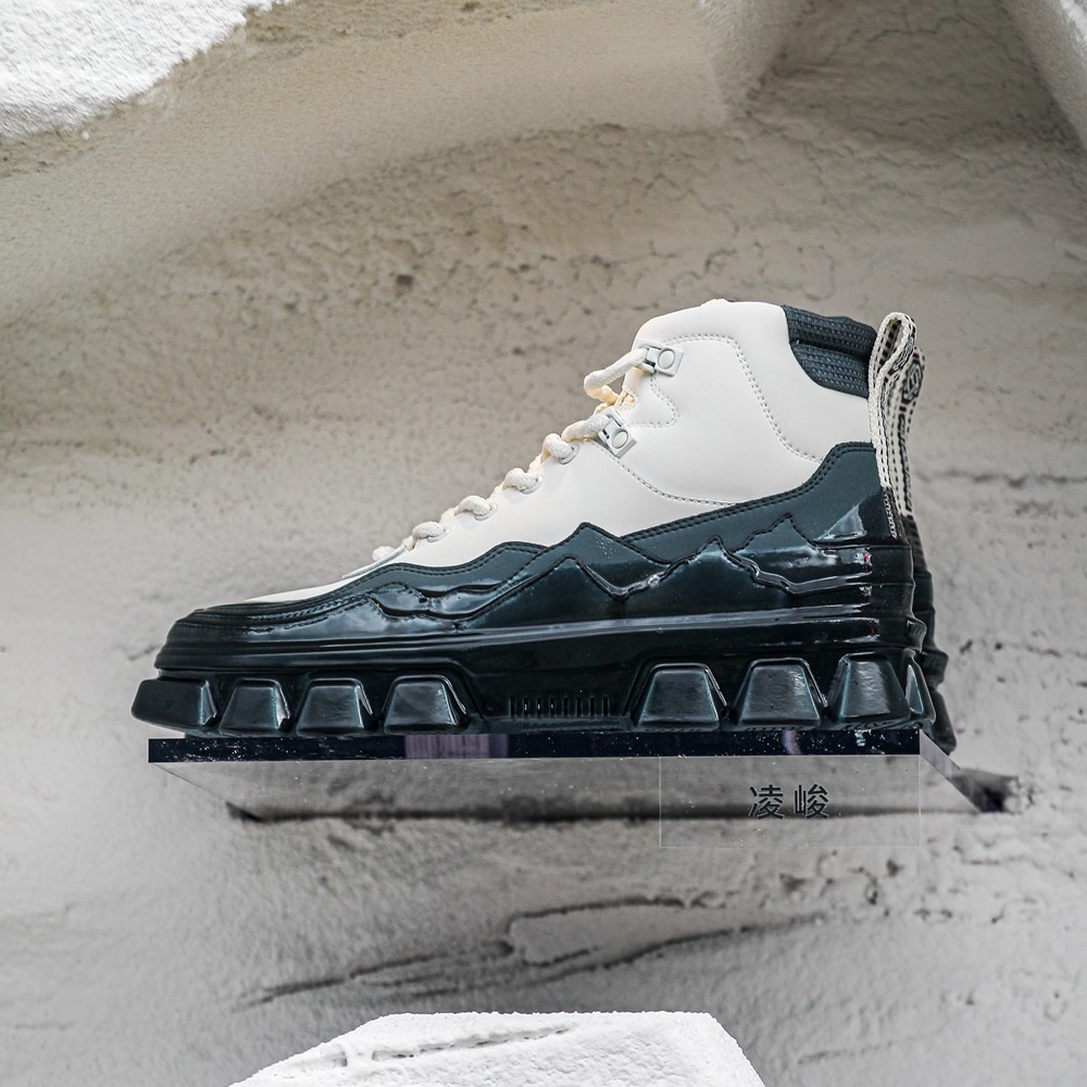 有将珠穆朗玛峰山脊轮廓勾勒的缓震跑鞋「凌越」,也有驾驭雪山防水保暖的硬核户外鞋「凌峻」。