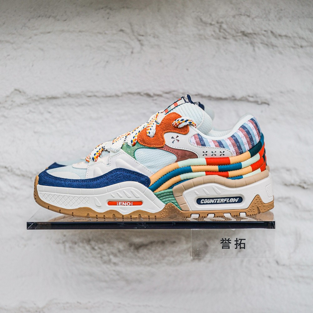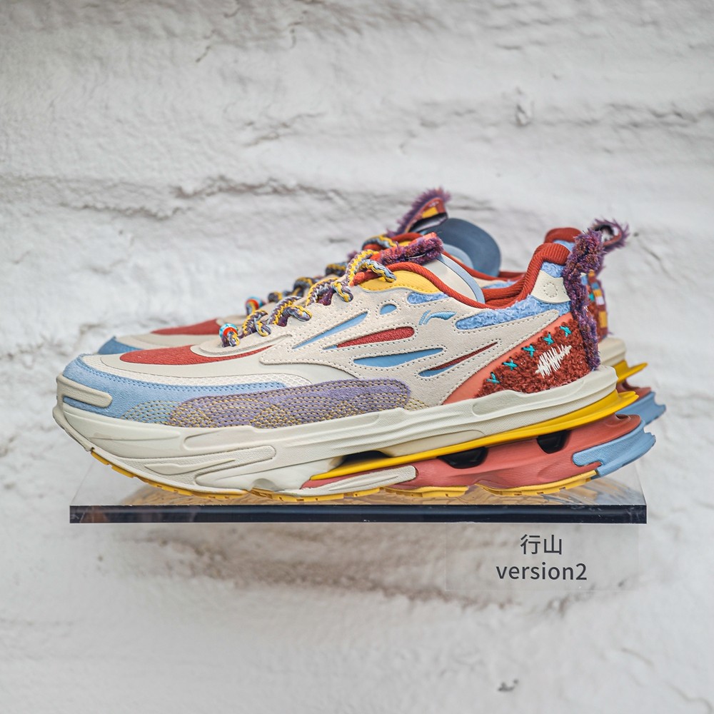 既有将高原地貌幻化为多重材质结构缓震的「行山」系列,也有以五彩经幡为概念妆点的「誉托」。