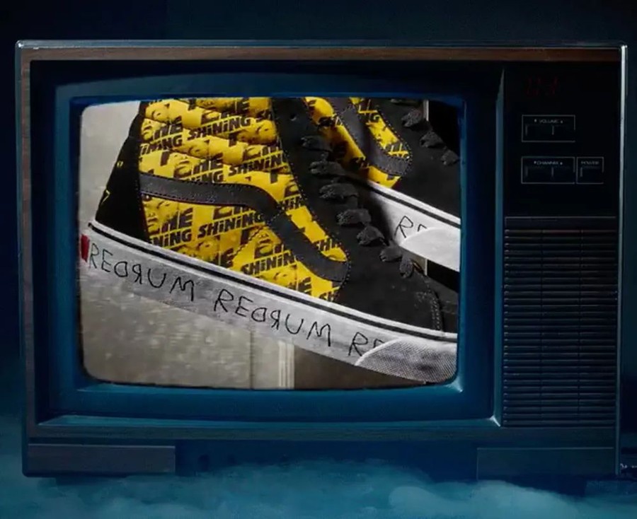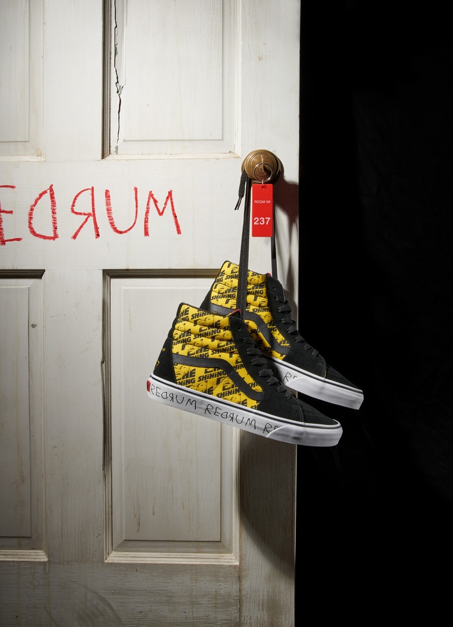 第二双,以 Sk8-Hi 为蓝本打造,鞋面满印的文字取自电影《闪灵》,更将影片中具有代表性的 “REDRUM” 字样以手写的风格呈现在中底上。