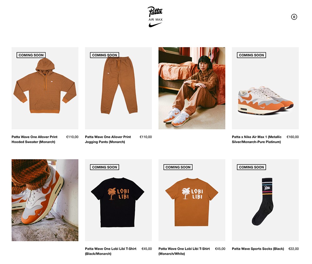 虽然鞋款尚未正式上架 SNKRS,但是 Patta 官网已经预热完毕,联名鞋款以及配套服饰均已显示 Coming Soon。
