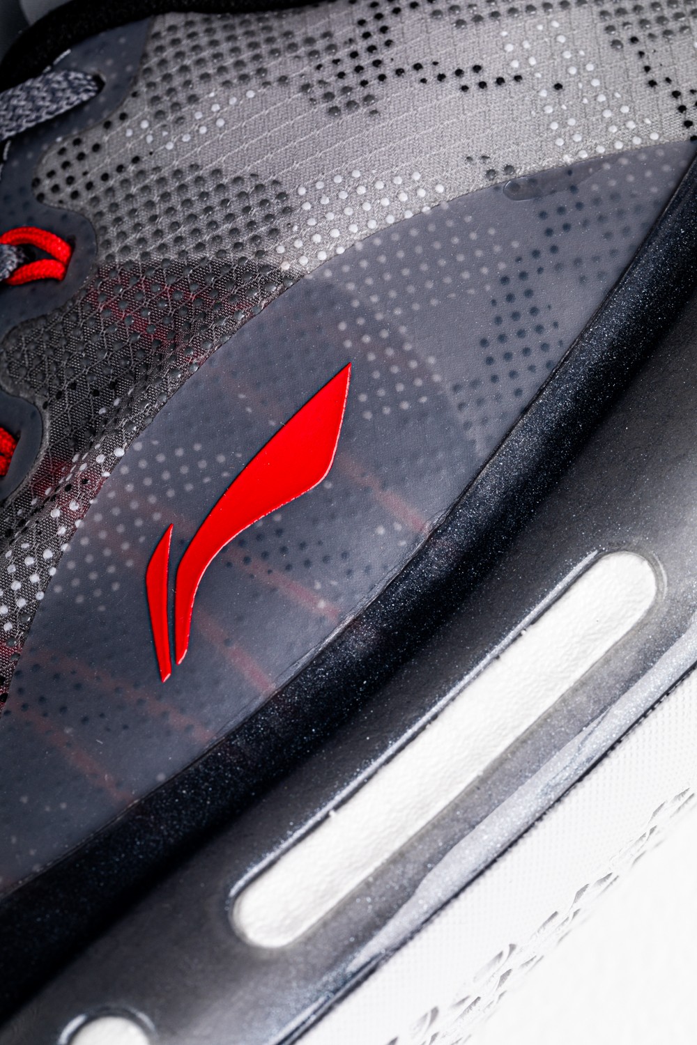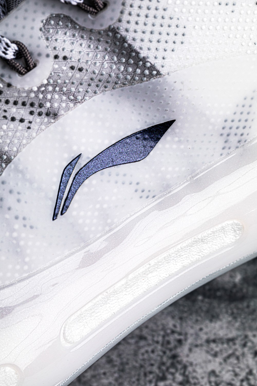 鞋侧李宁 Logo 辅以紫色点缀,具有金属光泽。