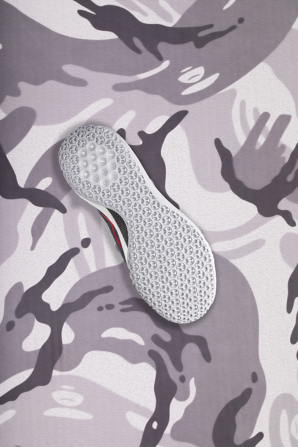 细看鞋面纹理相较于市售版,加入了更多立体波点元素勾勒迷彩纹理。