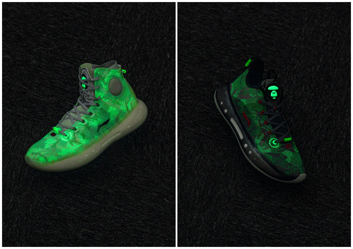 本次李宁驭帅 14 䨻 AAPE 合作款共带来高帮与低帮两种款式。