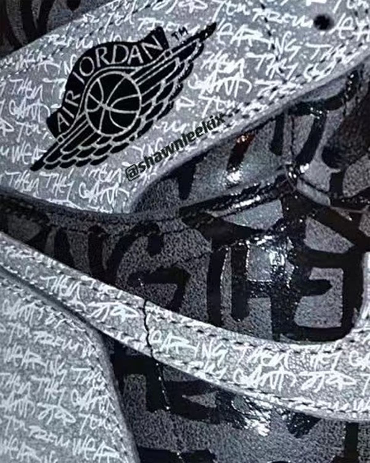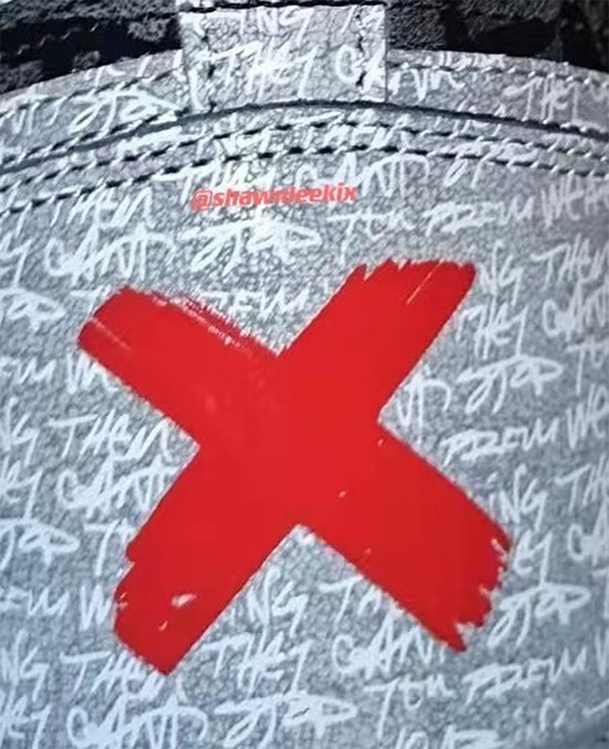 整体采用黑灰主色,这一眼看过去妥妥的就是「Shadow」配色,但后跟醒目的 X 油漆涂鸦,则强调是禁穿主题无疑!