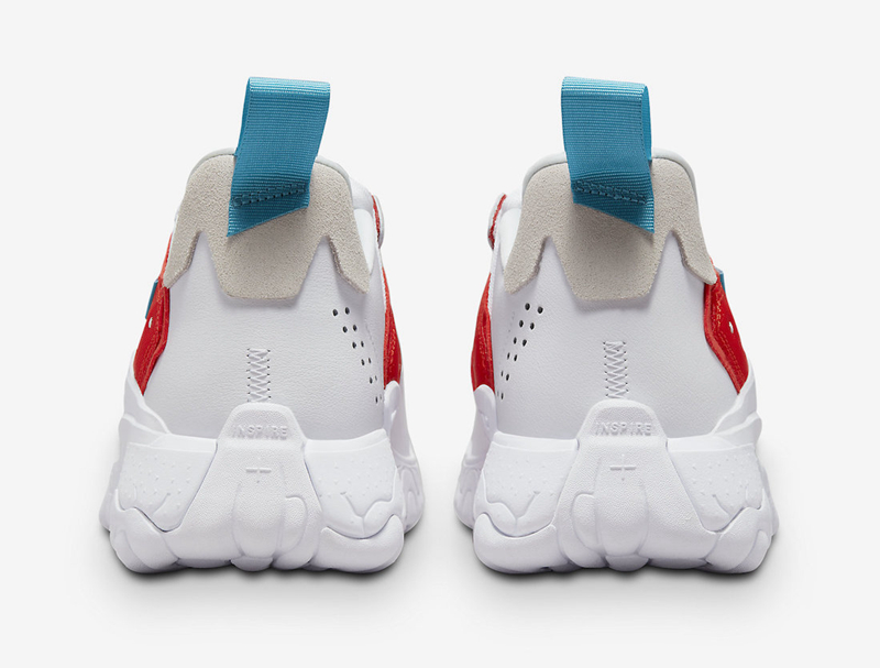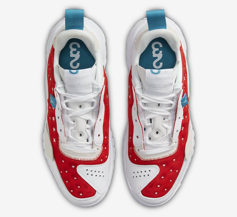 配色方面采用十分经典的白、红搭配为主色调,并在鞋身各处点缀浅蓝色细节。