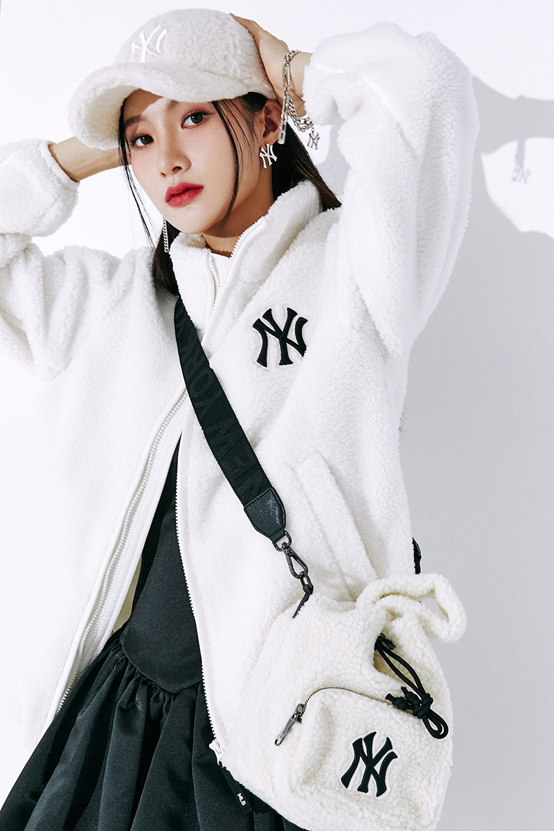 MLB 中国区代言人孟美岐上身演绎,羊羔绒系列涵盖外套、卫衣、长短款外套、渔夫帽、挎包等多款单品。