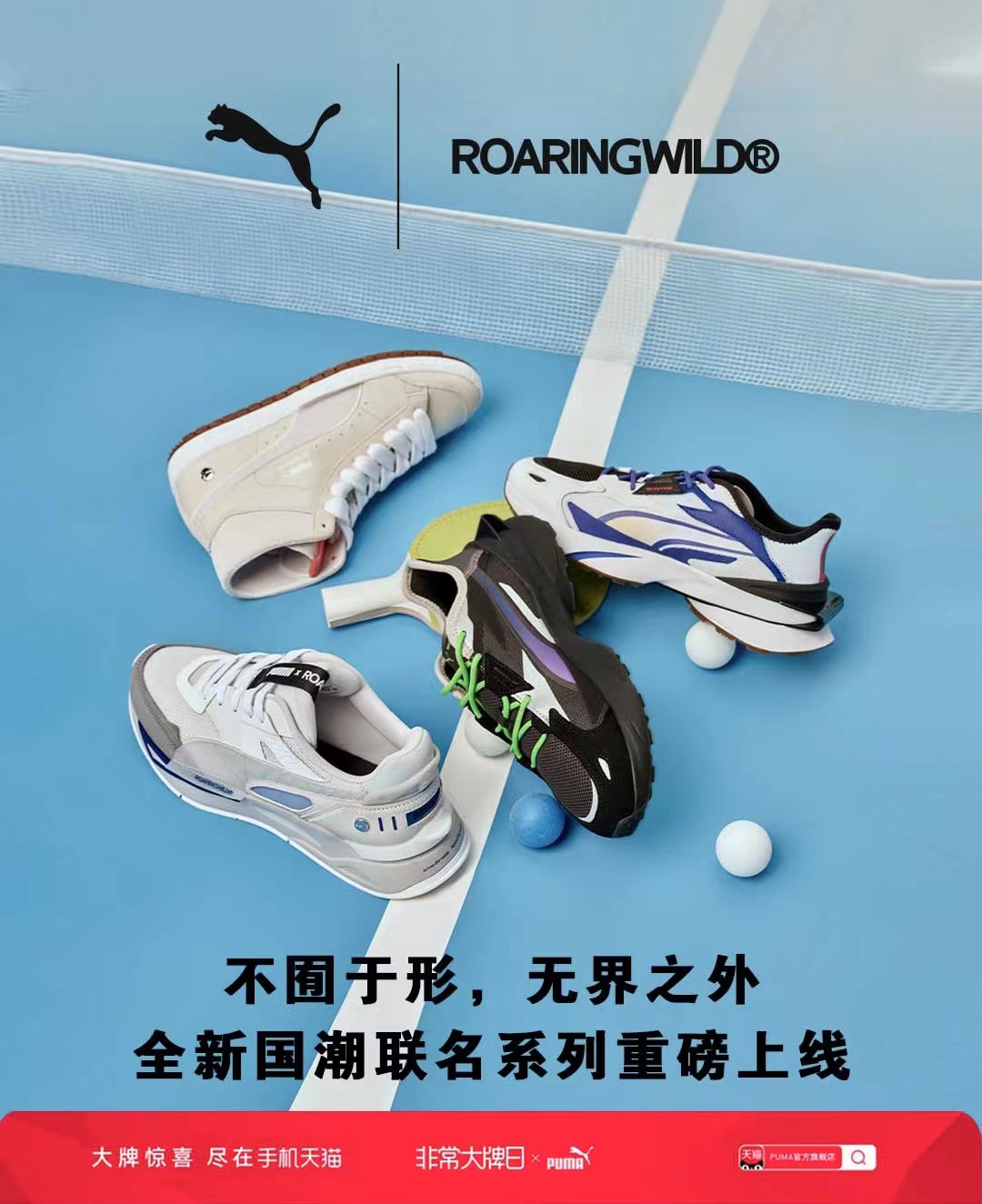 全新 PUMA x ROARINGWILD 联名系列现已在 PUMA 官网 cn.puma.com、天猫 PUMA 官方店、PUMA 专卖店及指定精选零售店发售。