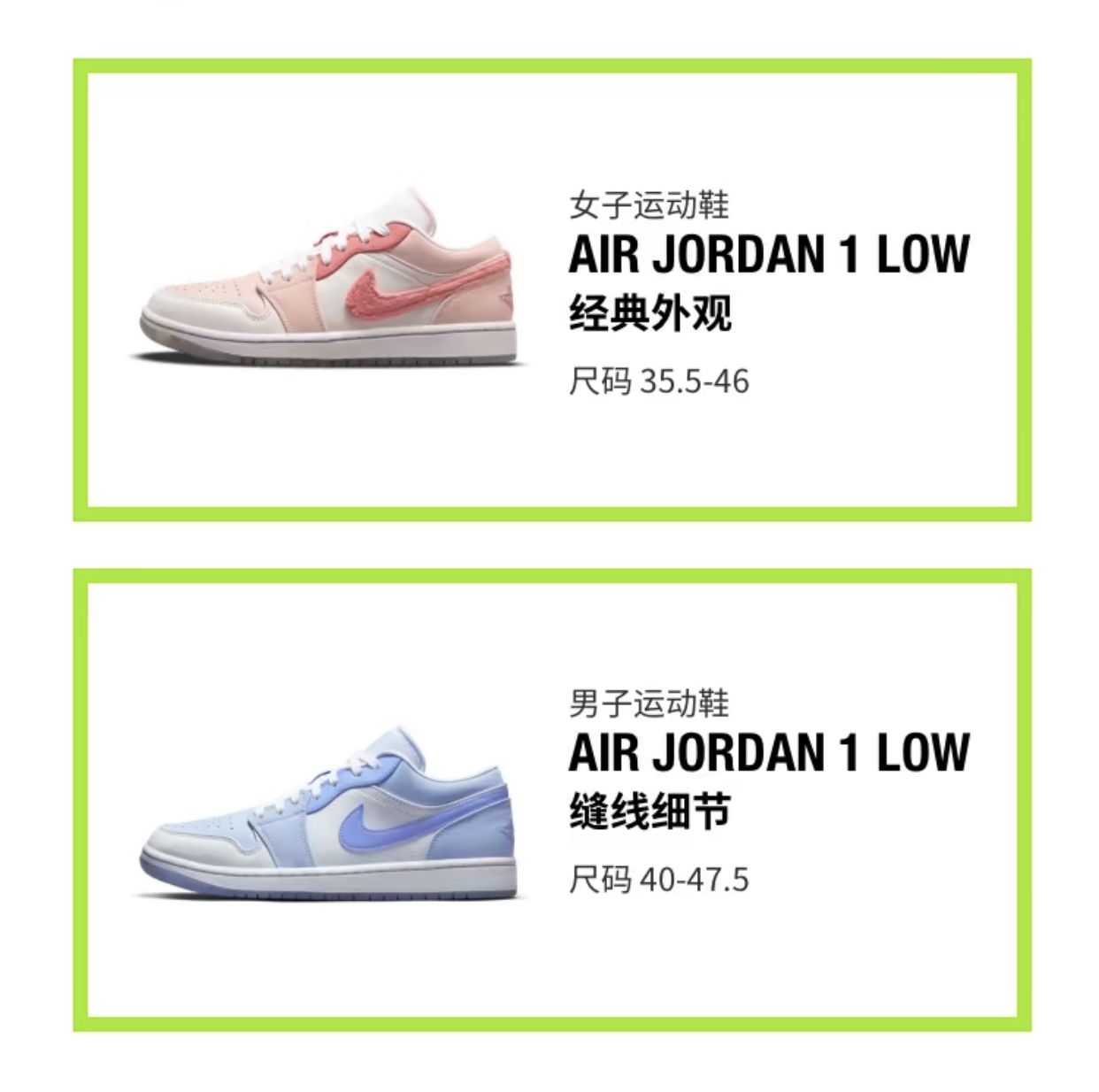 高低帮两款 Air jordan 1 分别呈现出 Union x Air Jordan 1 和经典的扣碎篮板配色,颜值颇高。