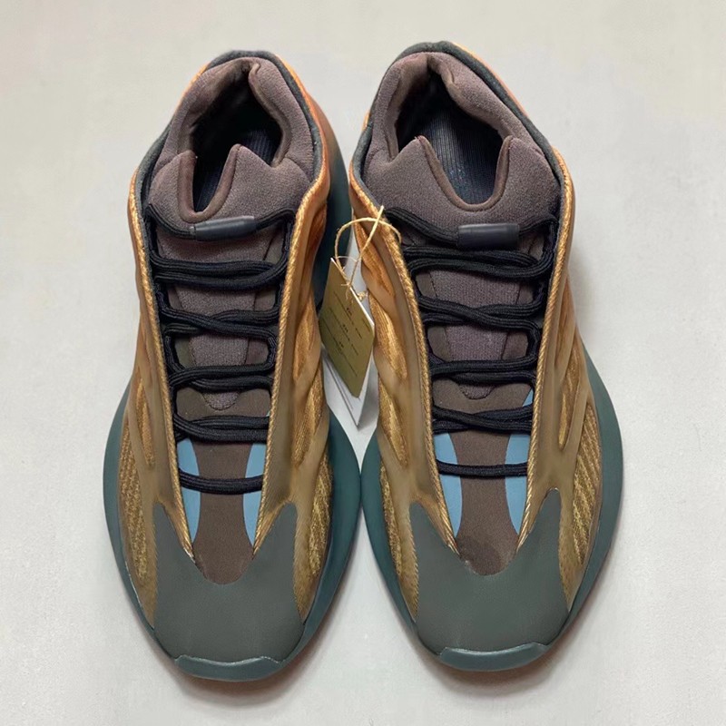 全新的 Yeezy 700 V3 不同于以往经常使用的大地色调,而是选择了更为吸睛的古铜色呈现,搭配上同色系的半透明鞋身框架,让人眼前一亮。
