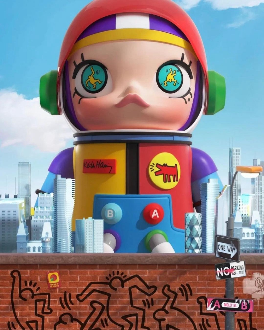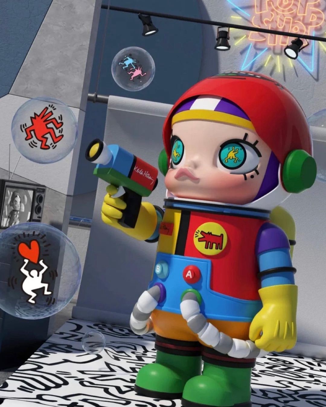 近期,泡泡玛特携手 Keith Haring(凯斯·哈林)推出了超巨大 1000% 尺寸的联名 MEGA SPACE MOLLY,熟悉的嘟嘟嘴小可爱,依旧有着男女通吃的可爱脸庞,引爆潮流圈。