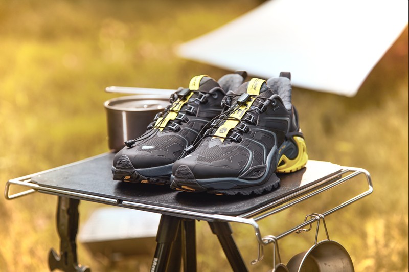 张力十足的大底纹路,进一步展现出户外机能的气质,配合抽绳鞋带设计以增添鞋款功能性。