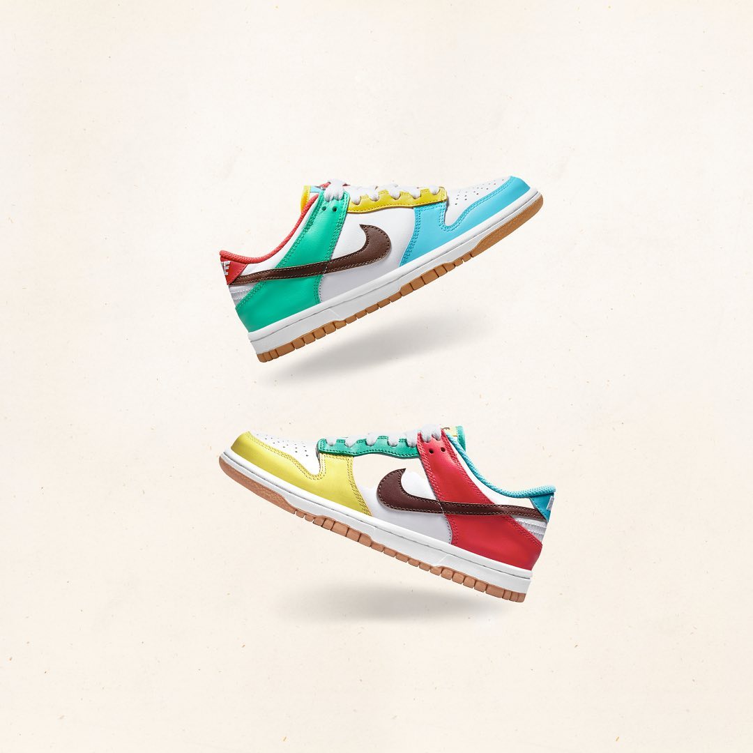 年初这款 Nike Dunk Low "Free 99" 有着少见的糖果色鸳鸯装扮,上脚非常清爽,市场行情约在原价左右。