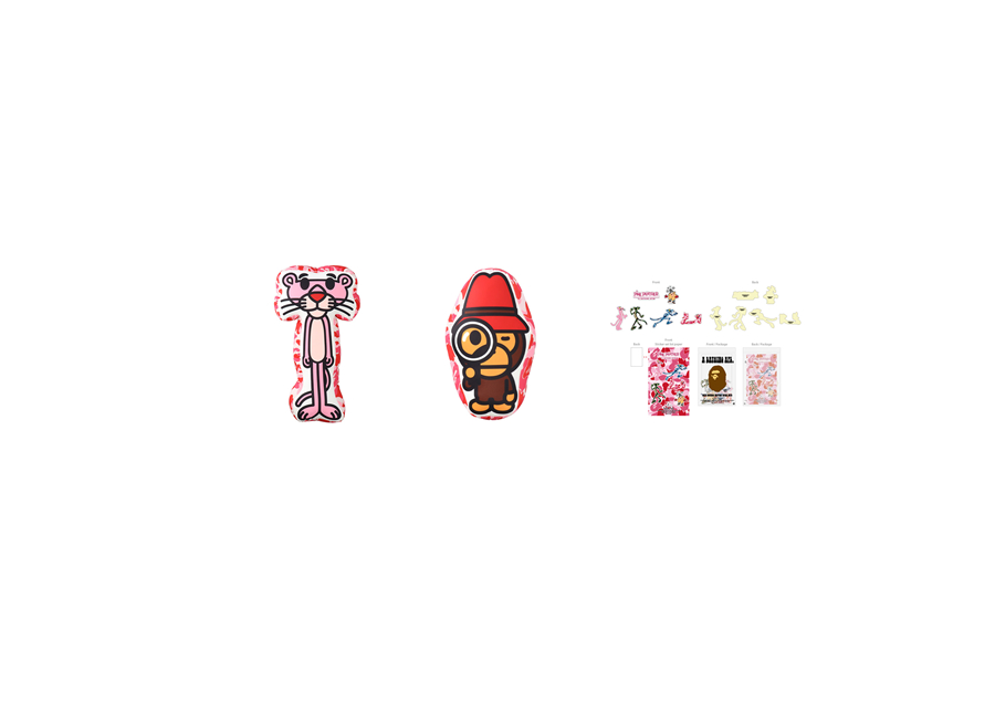 近日, BAPE 与经典动画人物粉红豹首次合作,将双方品牌的经典形象和符号注入,带来多款联名服饰、抱枕等潮流配件。