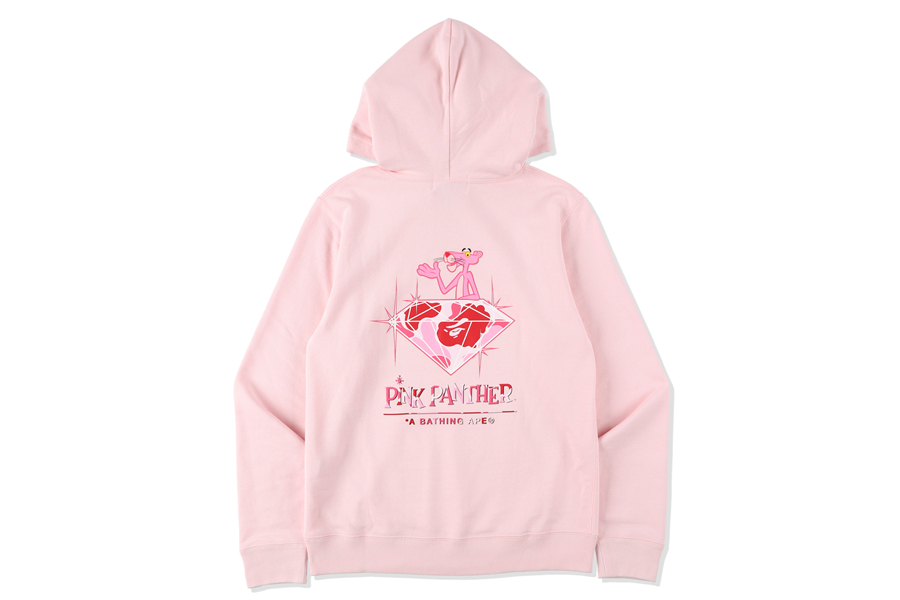 长袖 T 恤则以身姿纤细苗条的粉红豹为主角,注入 BAPE 标志性的粉色 ABC 迷彩。