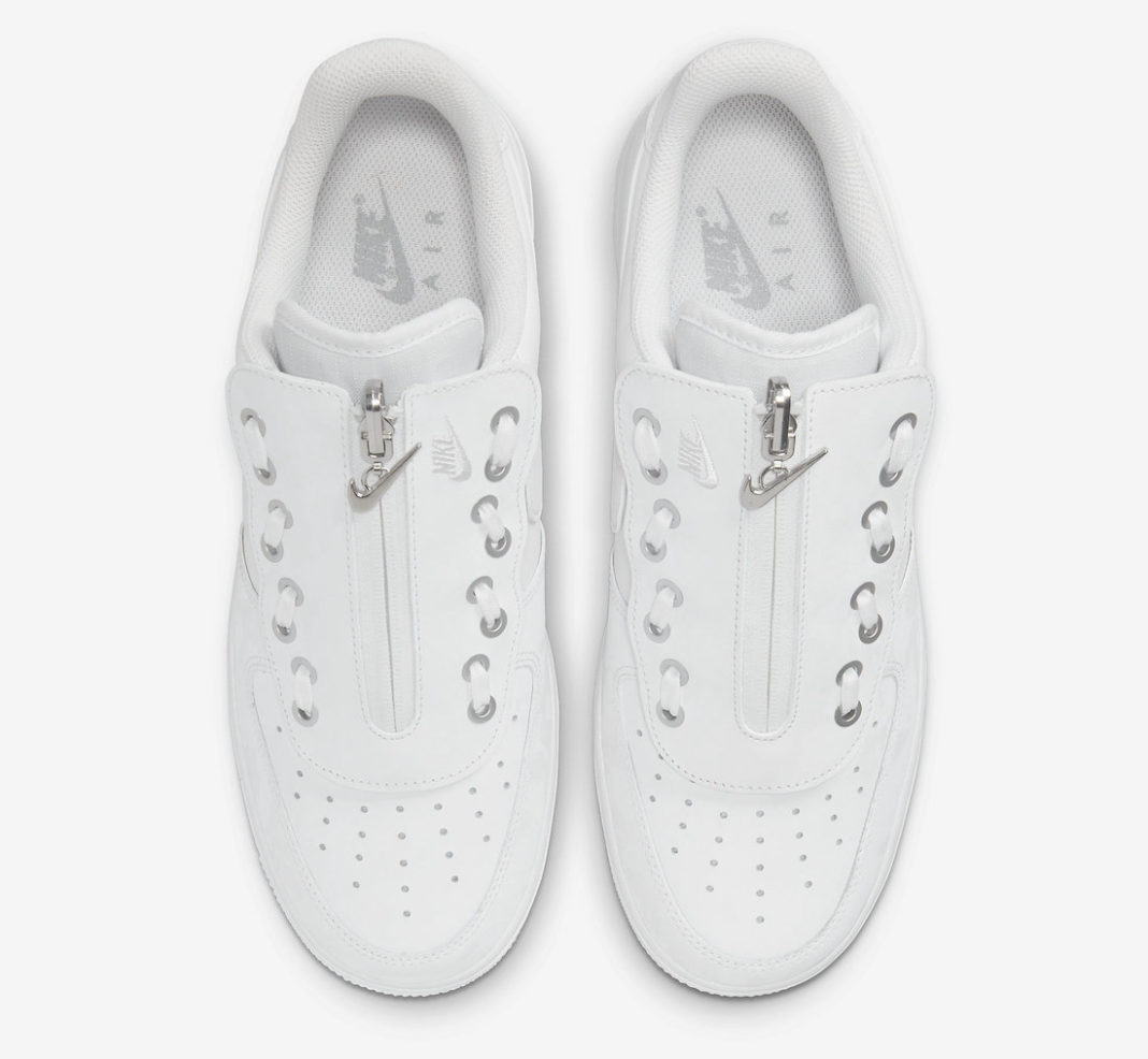 金属 Swoosh 拉链在白色鞋身的映衬下,显得格外亮眼,更营造出不俗的高级感。