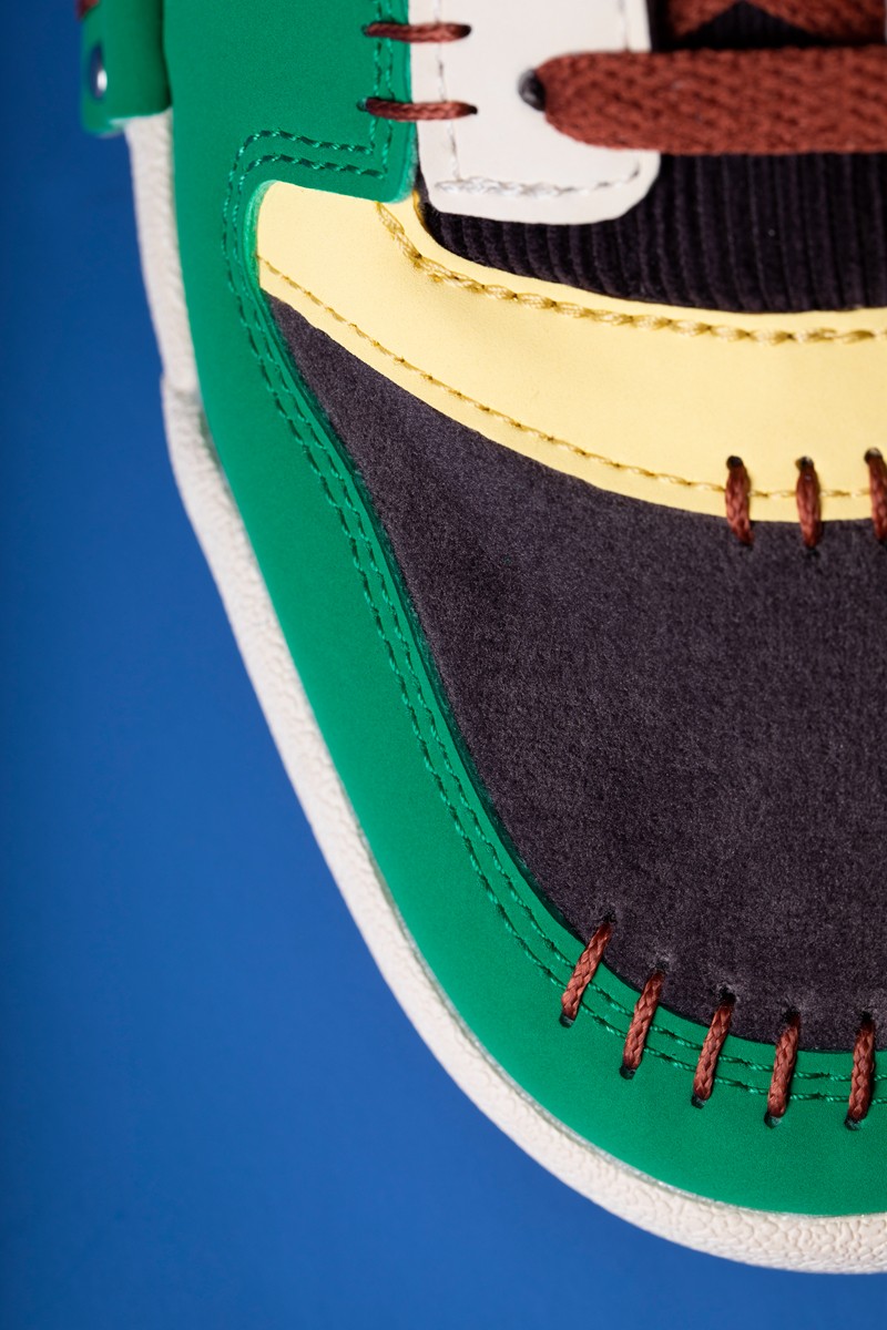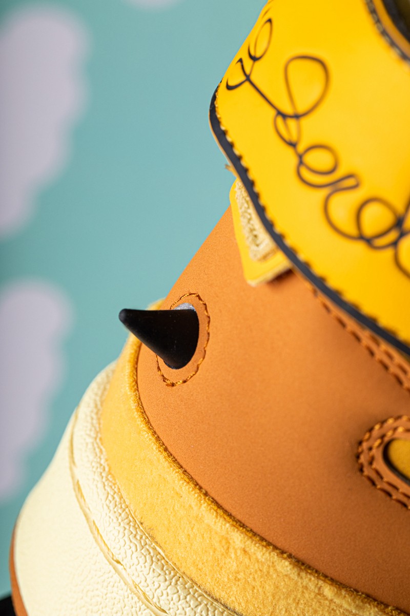 而鞋款自然也是按照角色的配色做设计,整体黄黑的搭配比起上一双更加街头一些,鞋面材质同样是五花八门。