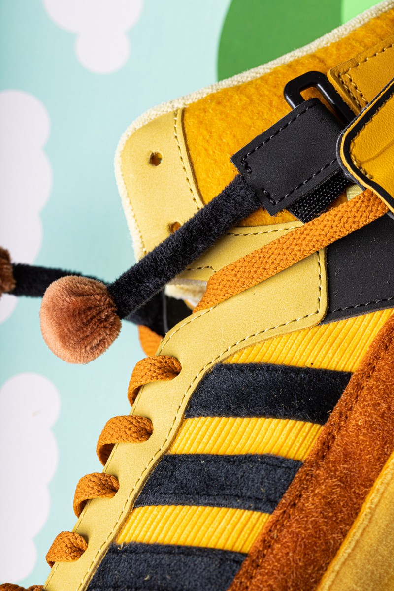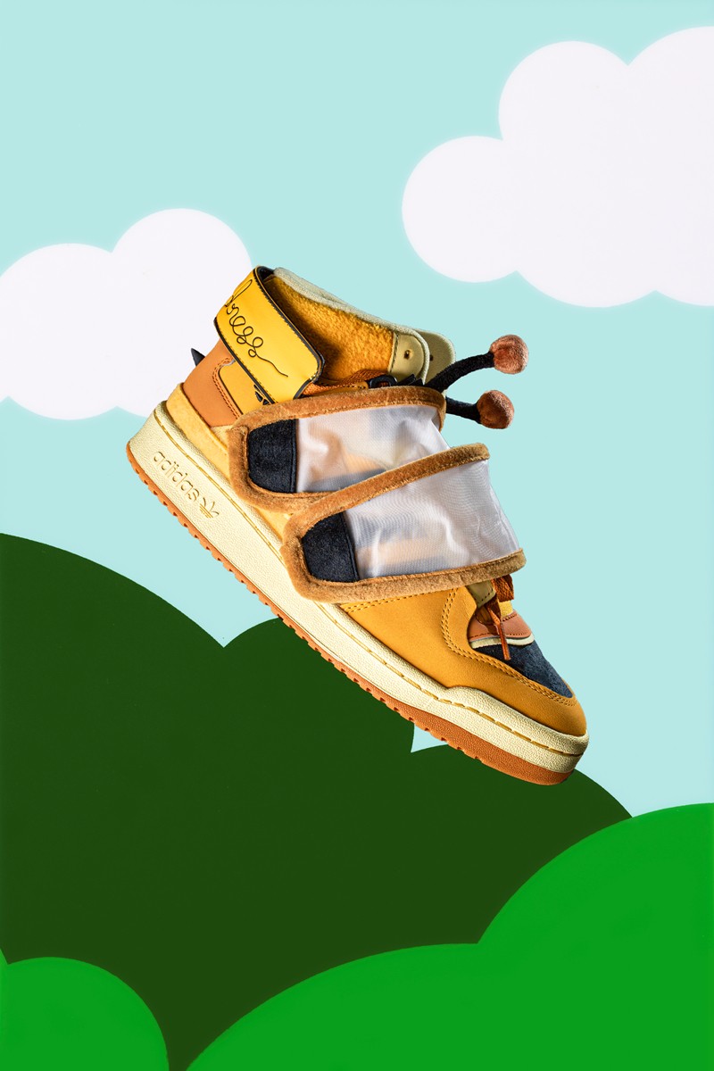 值得一提的是玩偶还可以搭载在鞋款之上,造型像极了早年间 adidas Originals 所推出的 Jeremy Scott 联名鞋!