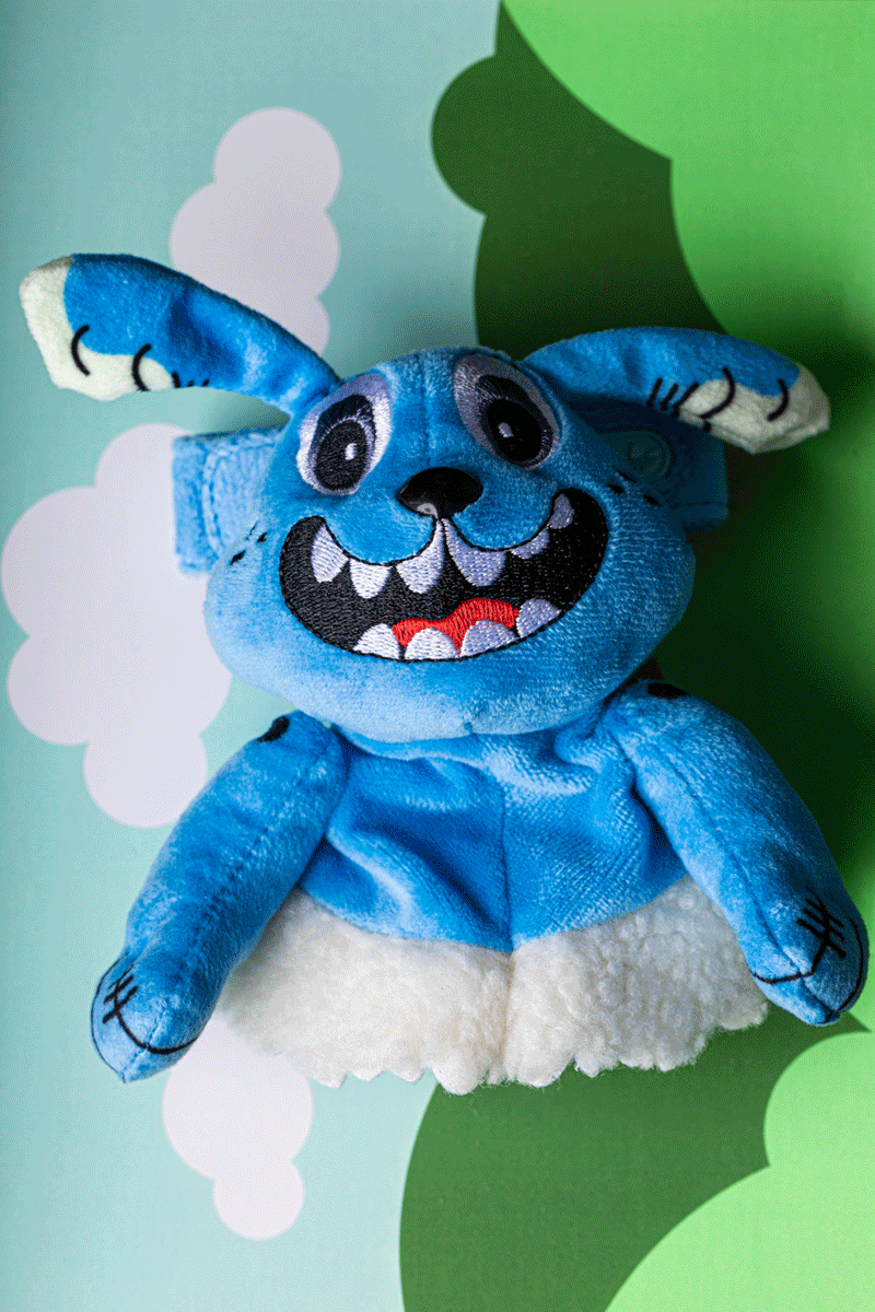 第一双的角色叫做 “KARORO”,是一只搞怪的蓝色兔子,炯炯有神的大眼睛和一嘴大白牙让人一眼就忘不了它。