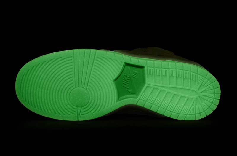 最大的亮点在于鞋身暗藏大面积夜光,水晶橡胶外底、后跟木乃伊眼睛部分以及鞋面刺绣都有夜光效果。