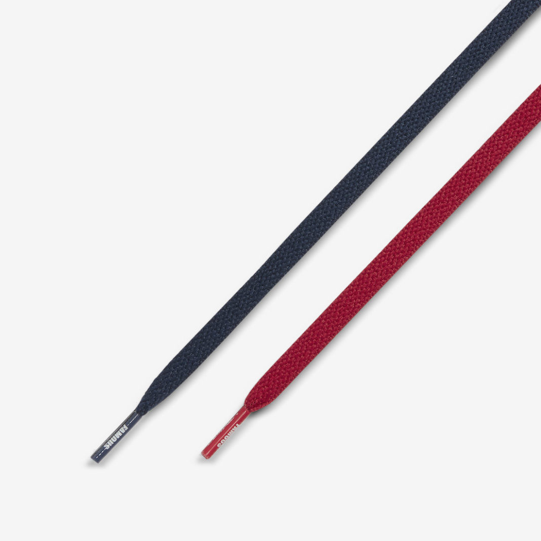 鞋面、鞋身框架分别以红色、深蓝色皮革材质打造,撞色设计带来极为吸睛的视觉效果。