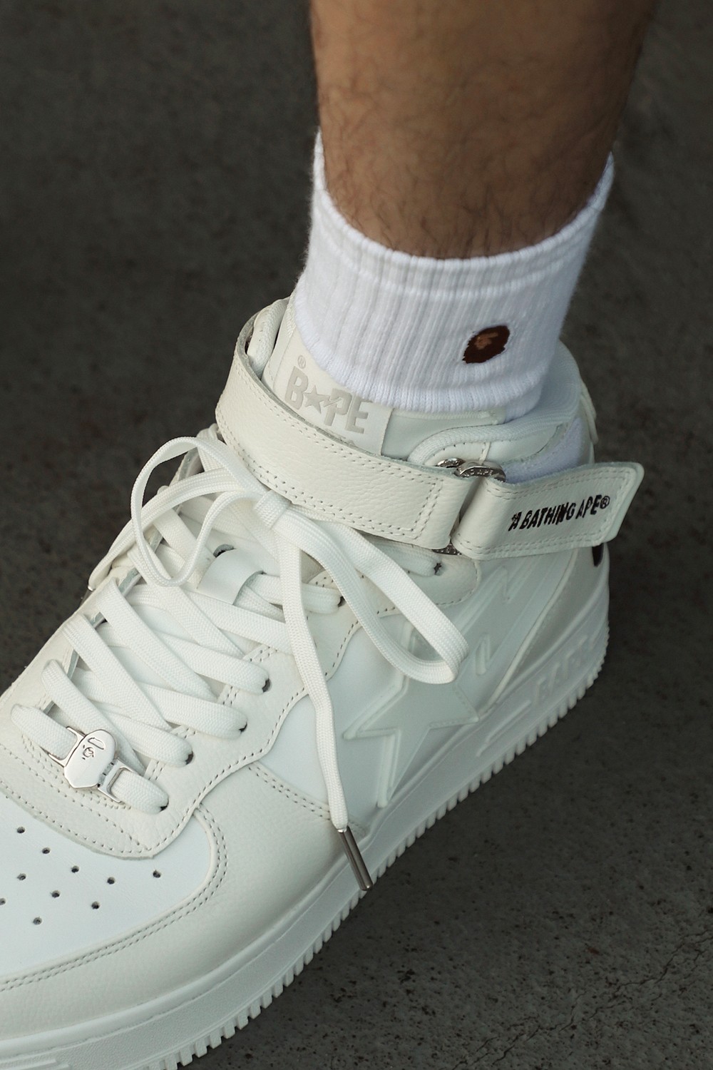 整双鞋在 BAPE STA 的基础上进行设计,带来全新高帮鞋款 BAPE STA MI,为经典的 BAPE STA 注入现代流行风格,更给玩家带来与众不同的穿着体验。