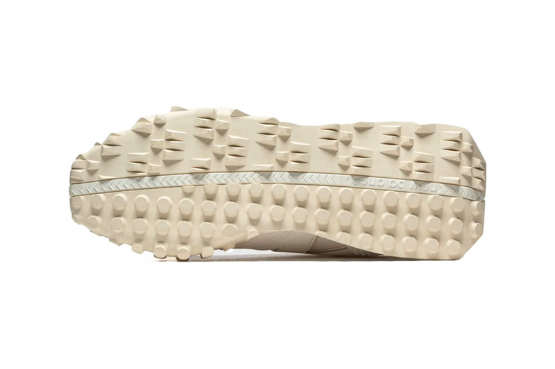 最后以纯白中底与带有轮胎面元素的米色橡胶外底完成整体设计。