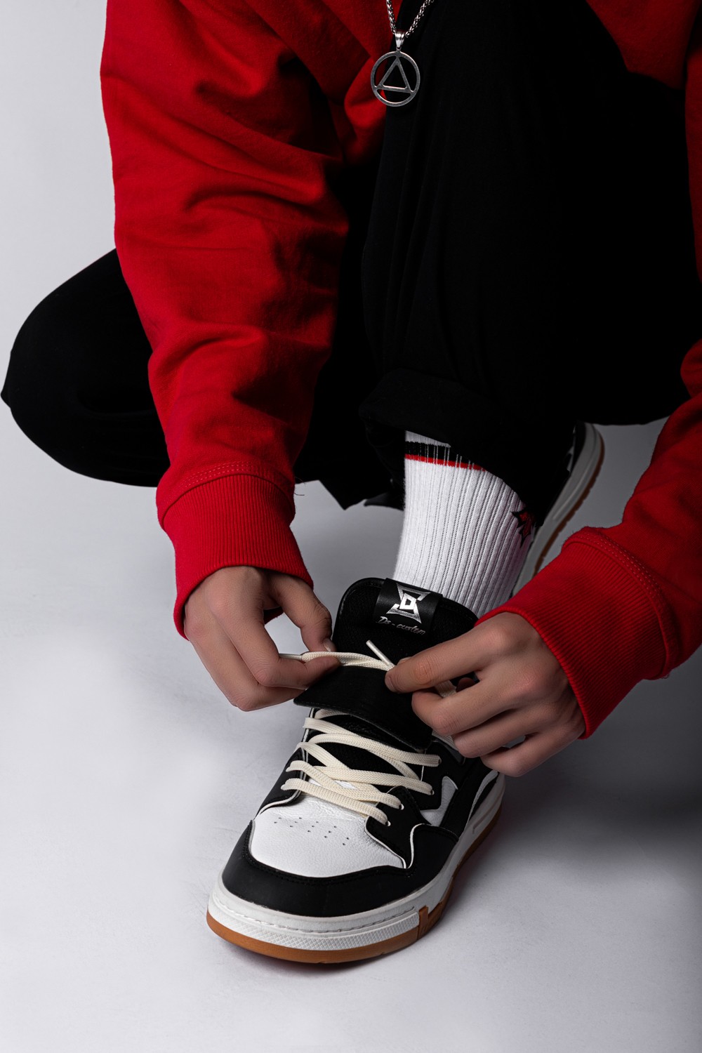 经典的黑白撞色,搭配李宁惟吾 Pro 的复古造型,上脚效果干练又百搭。