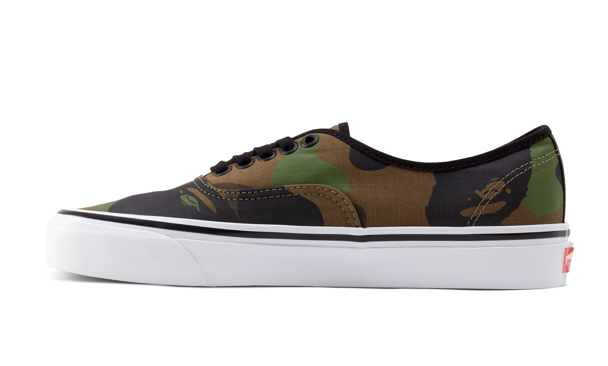 另一款,Authentic 鞋面覆盖满印的 BAPE 迷彩图案,为喜爱 BAPE 经典迷彩印花的爱好者们提供更多选择。