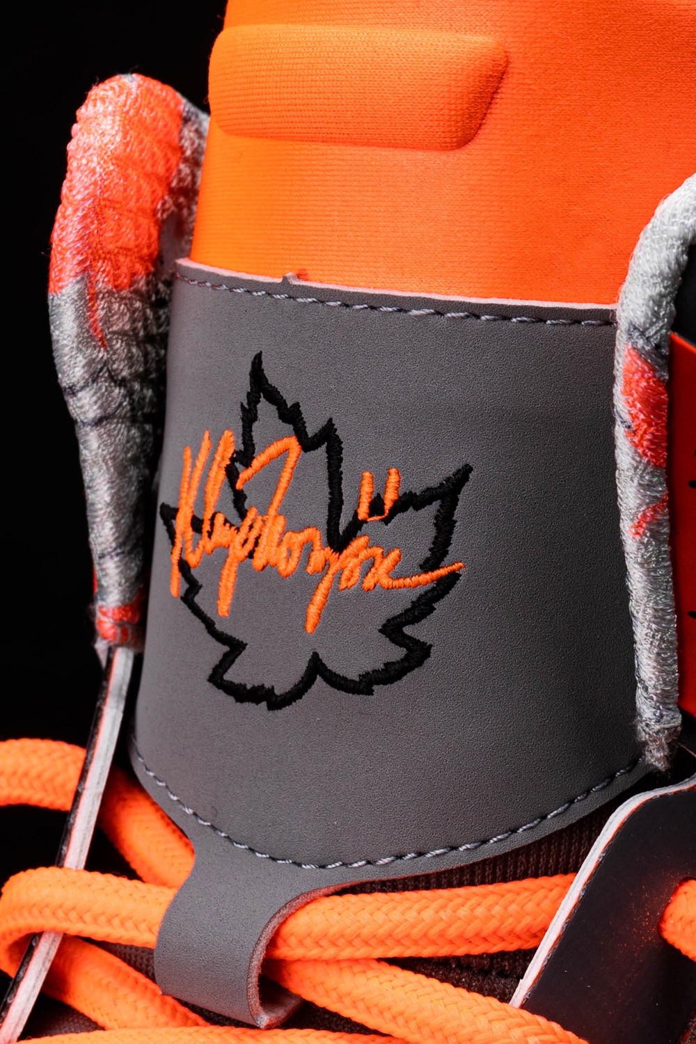 鞋舌、外底等部分点缀枫叶图案,因为 2016 年 NBA 全明星是在加拿大多伦多举办。